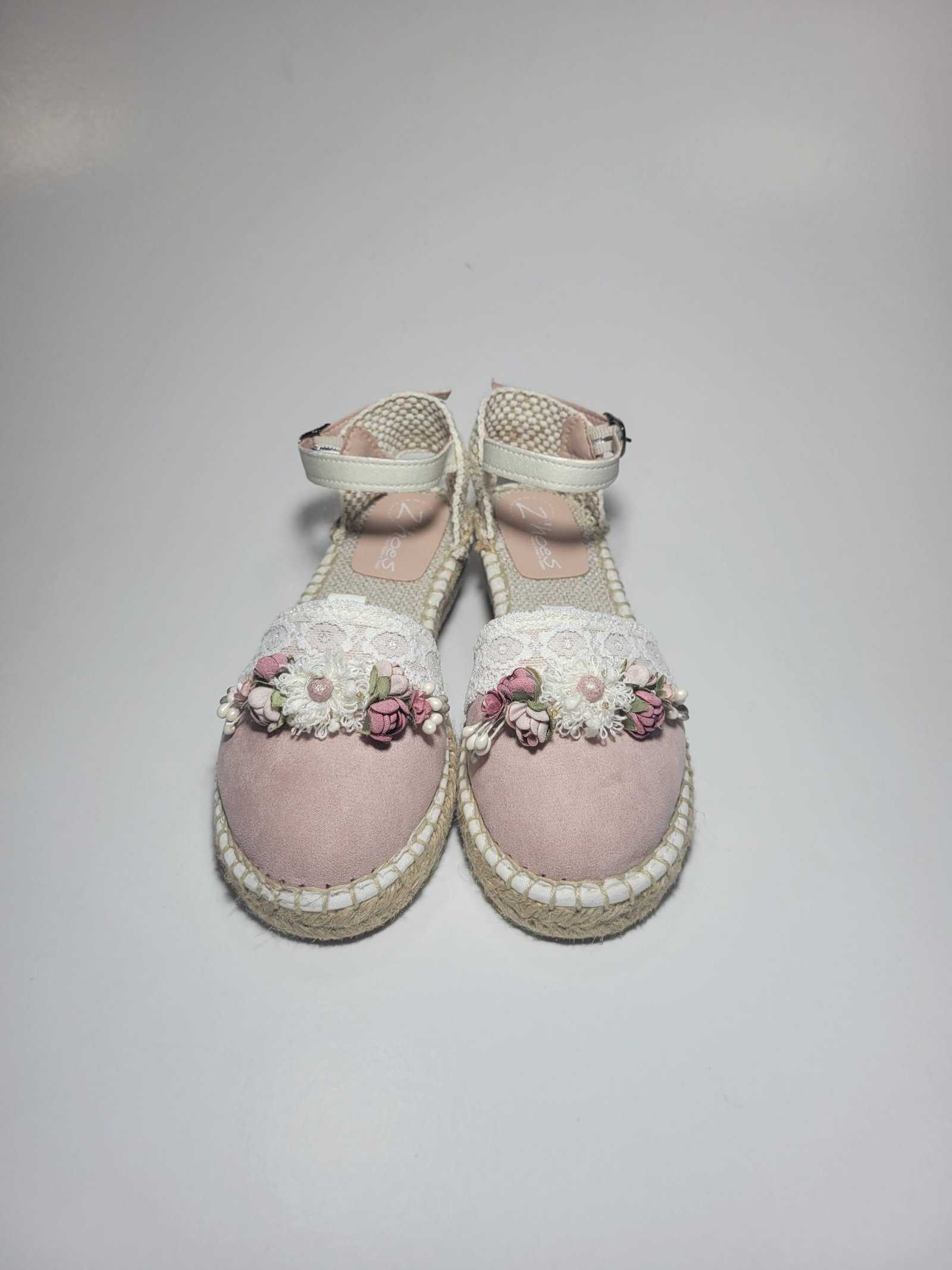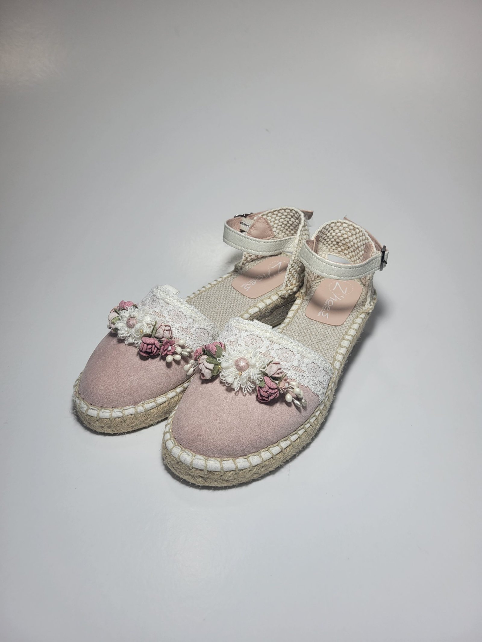 Alpercata Bege e Rosa com Flores Decorativas