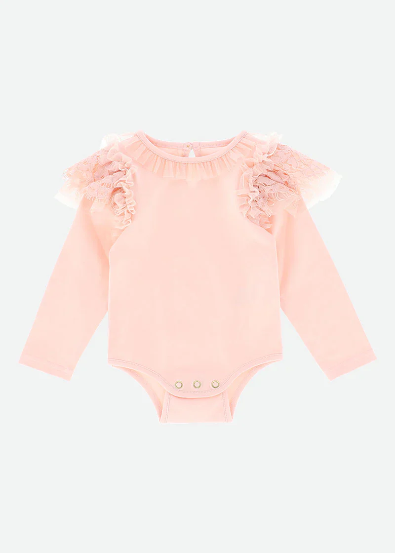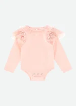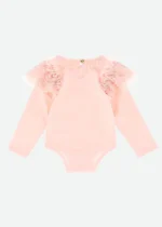 Body Rosa com Mangas em Folho e Renda