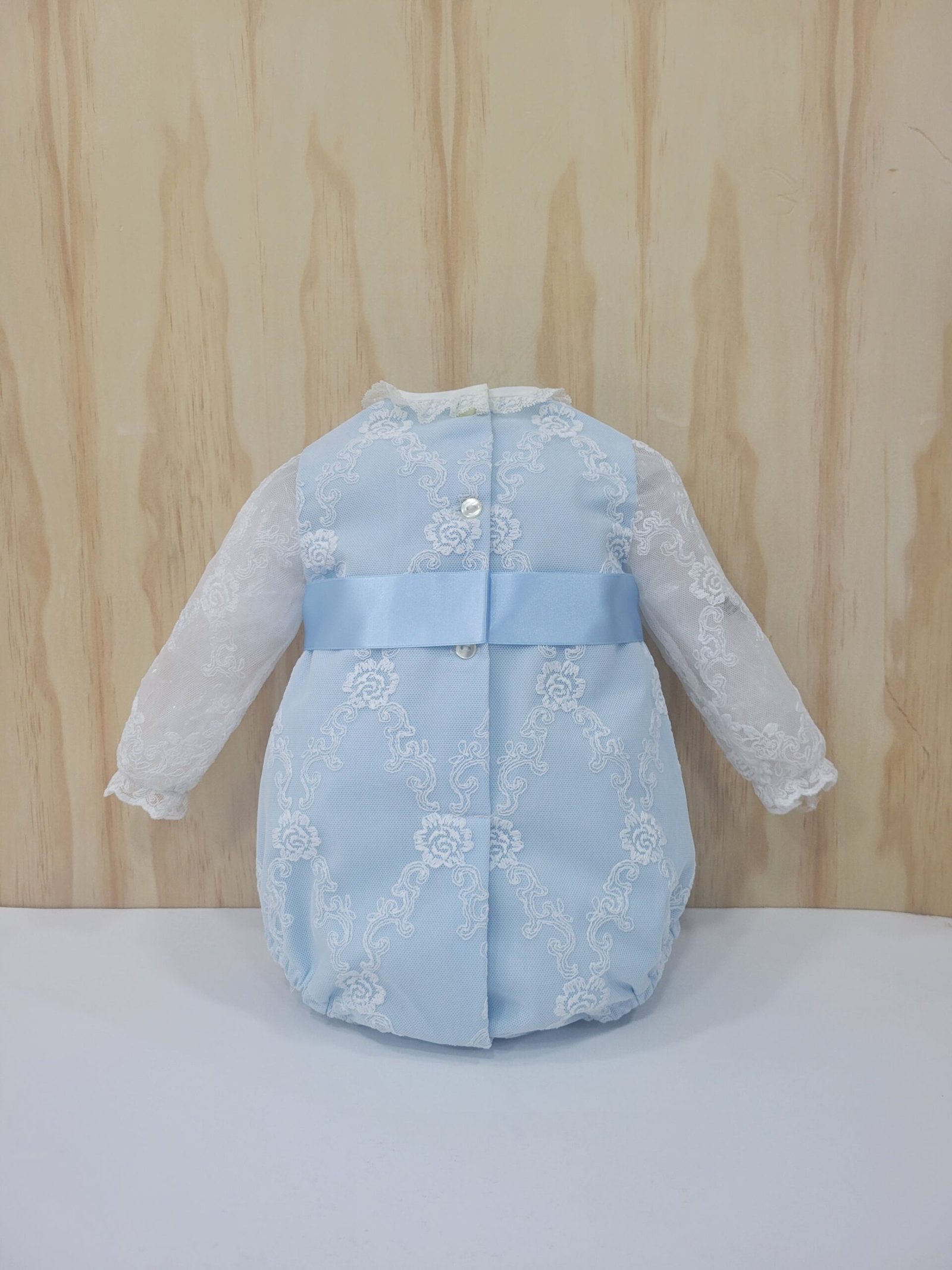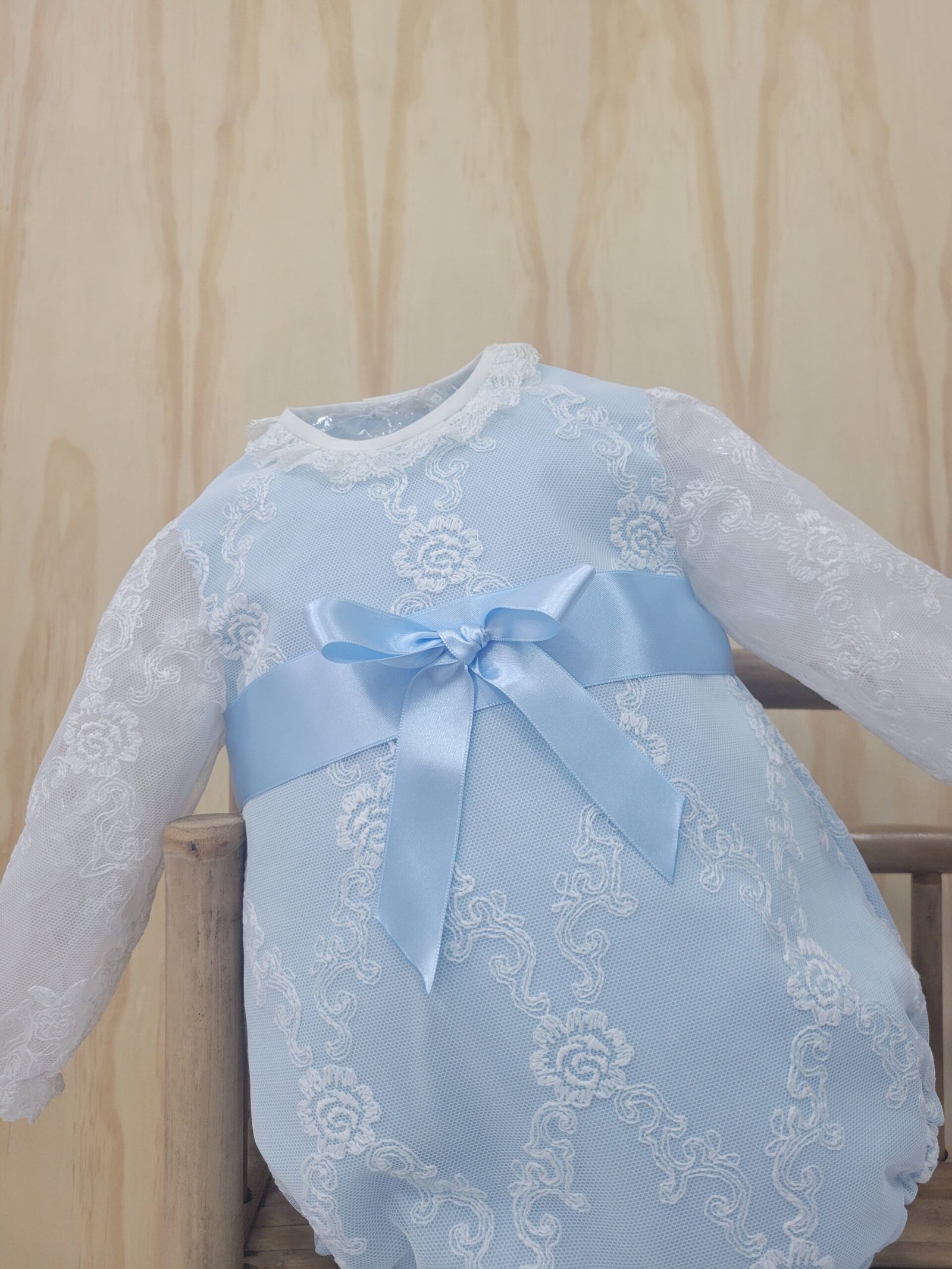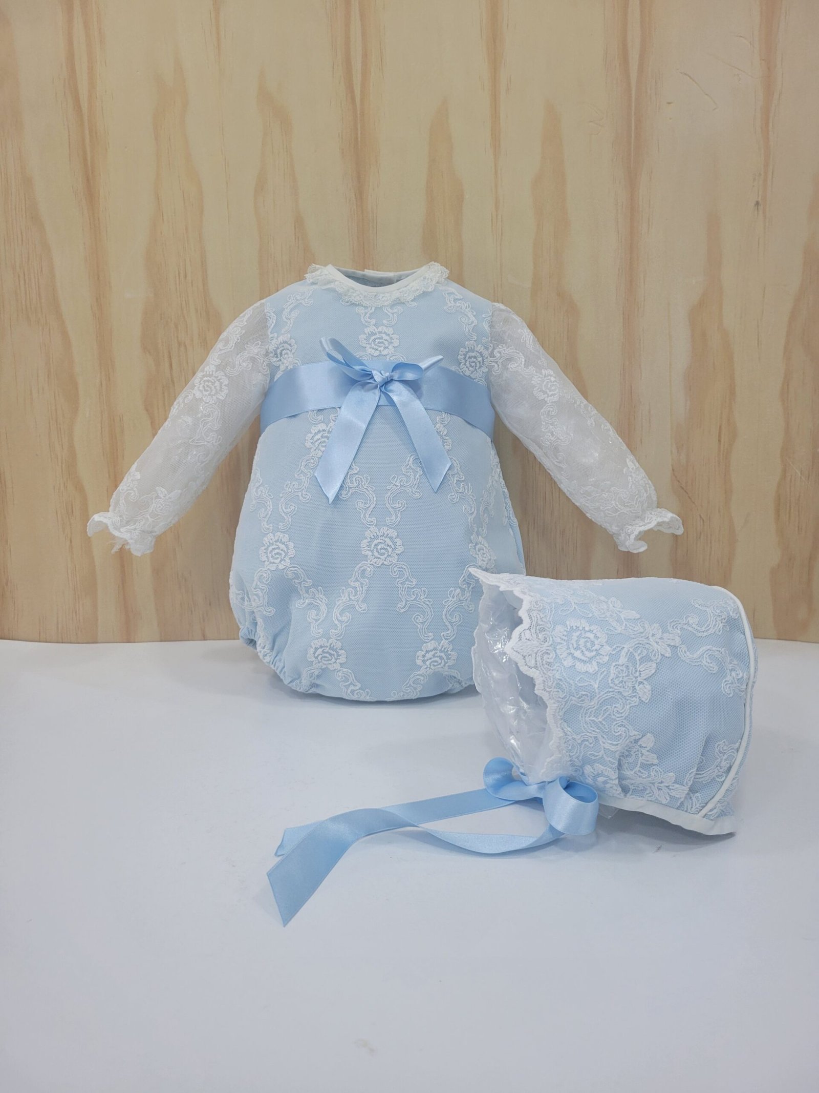 Ajuste: Mangas compridas em tule, gola redonda, e botões para facilitar o vestir na parte traseira e inferior, inclui capota