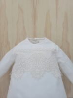 Ajuste: Mangas compridas, gola redonda, e botões para facilitar o vestir na parte traseira e inferior, capota incluída