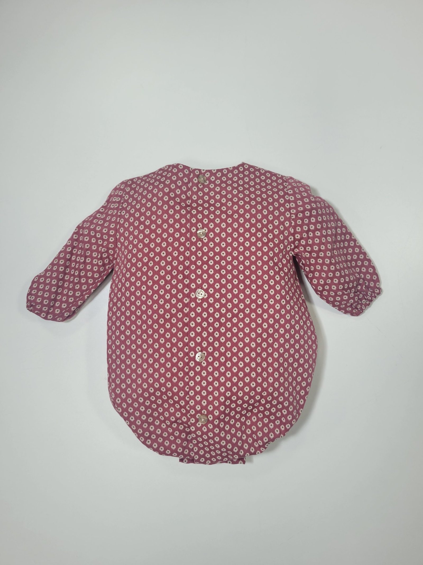 Ajuste: Mangas compridas, gola redonda, e botões para facilitar o vestir na parte traseira