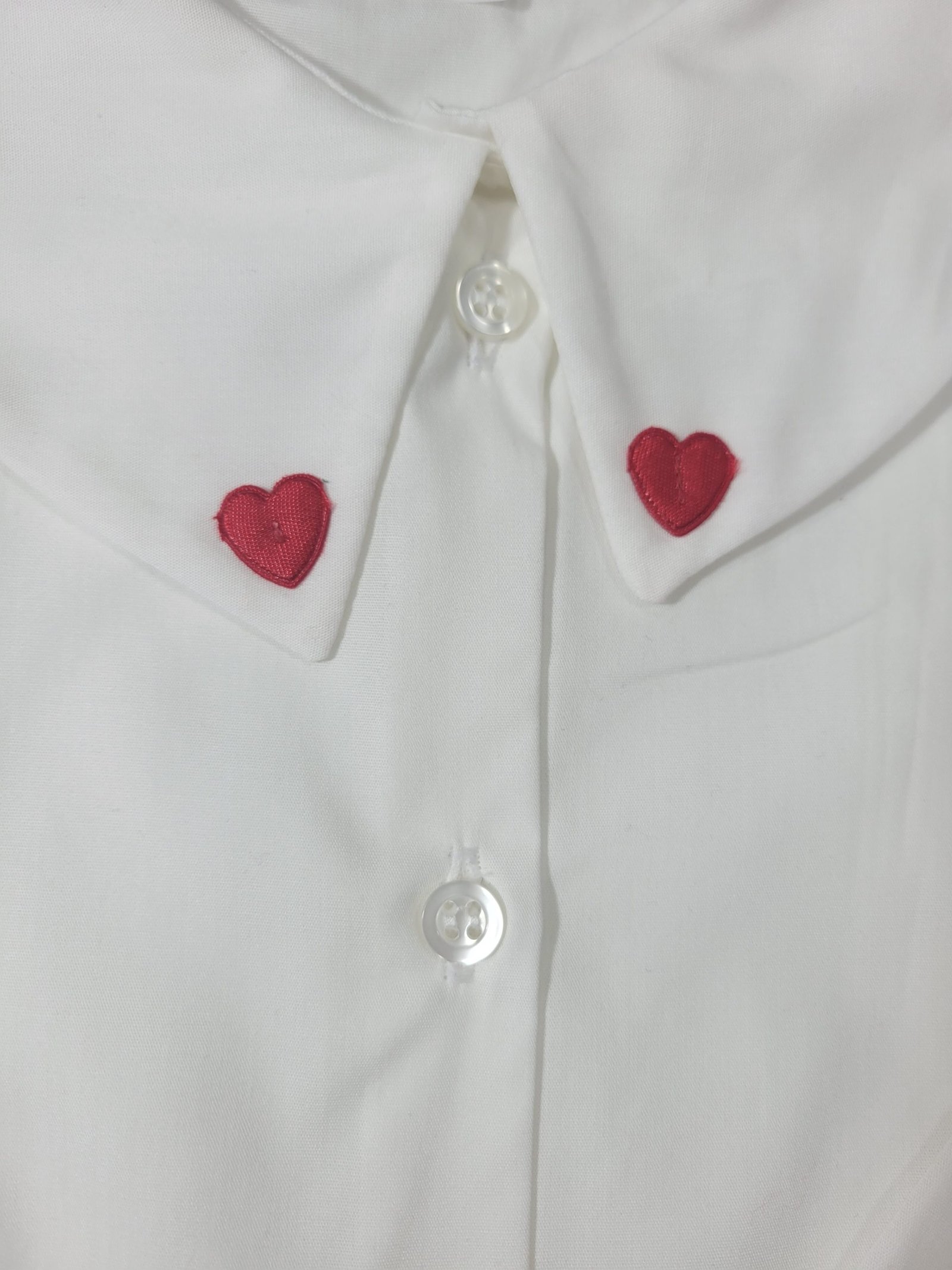Design: Simples com um pequeno detalhes de dois corações na parte da gola