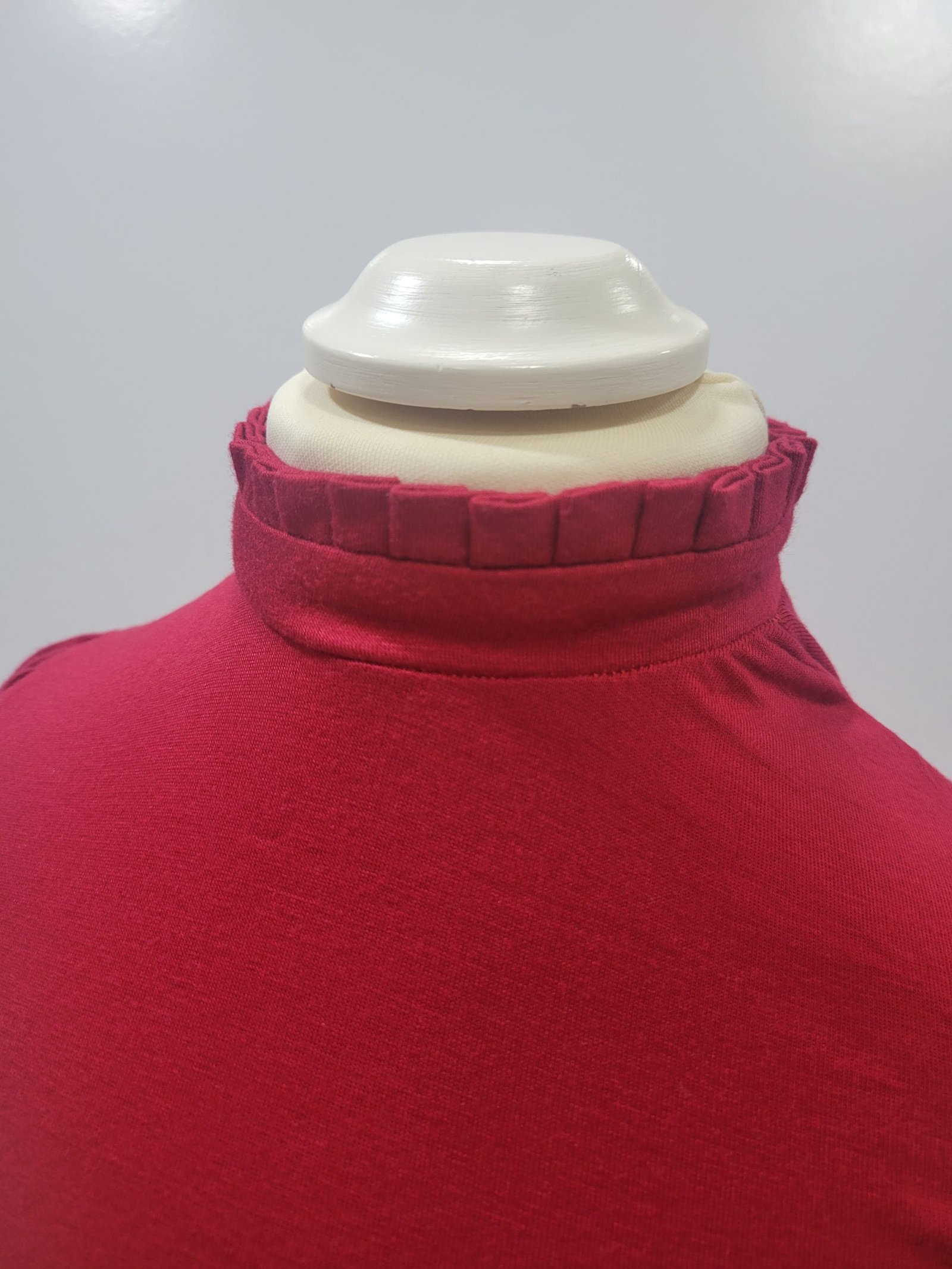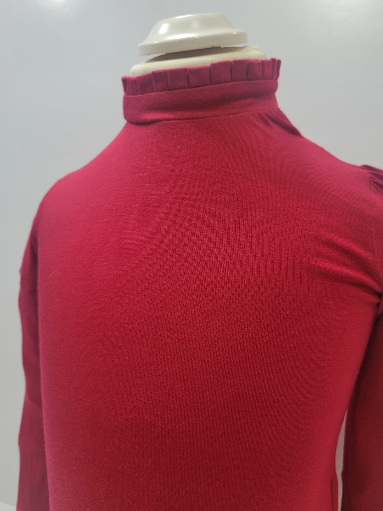 Ajuste: Corte regular, gola alta e redonda com mangas compridas e botões na parte traseira para melhor ajuste