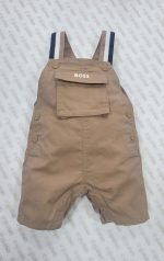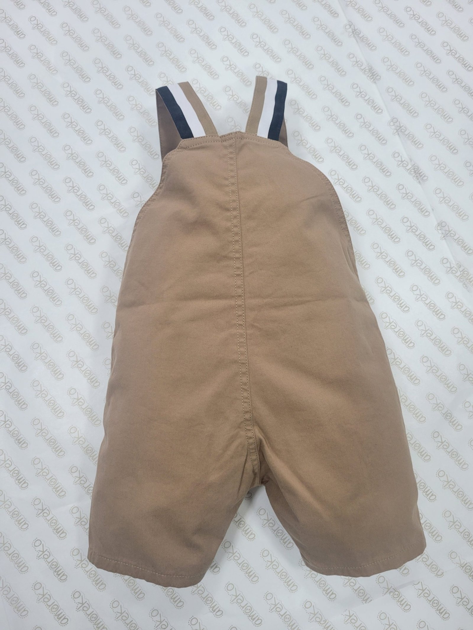 Cores: Cáqui, com detalhes listrados em preto e branco