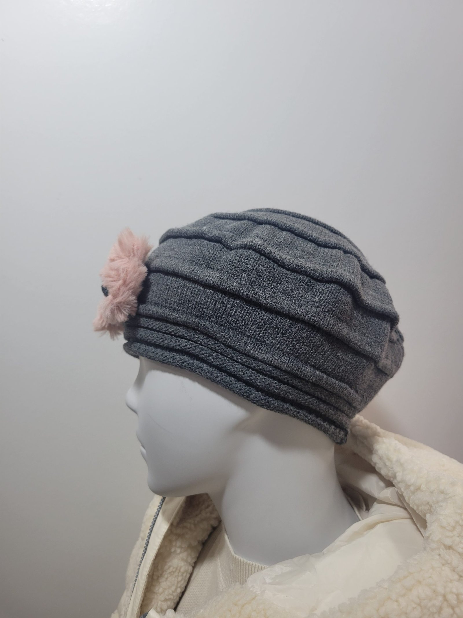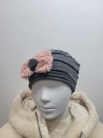 Gorro Cinzento com Laço Rosa Frontal