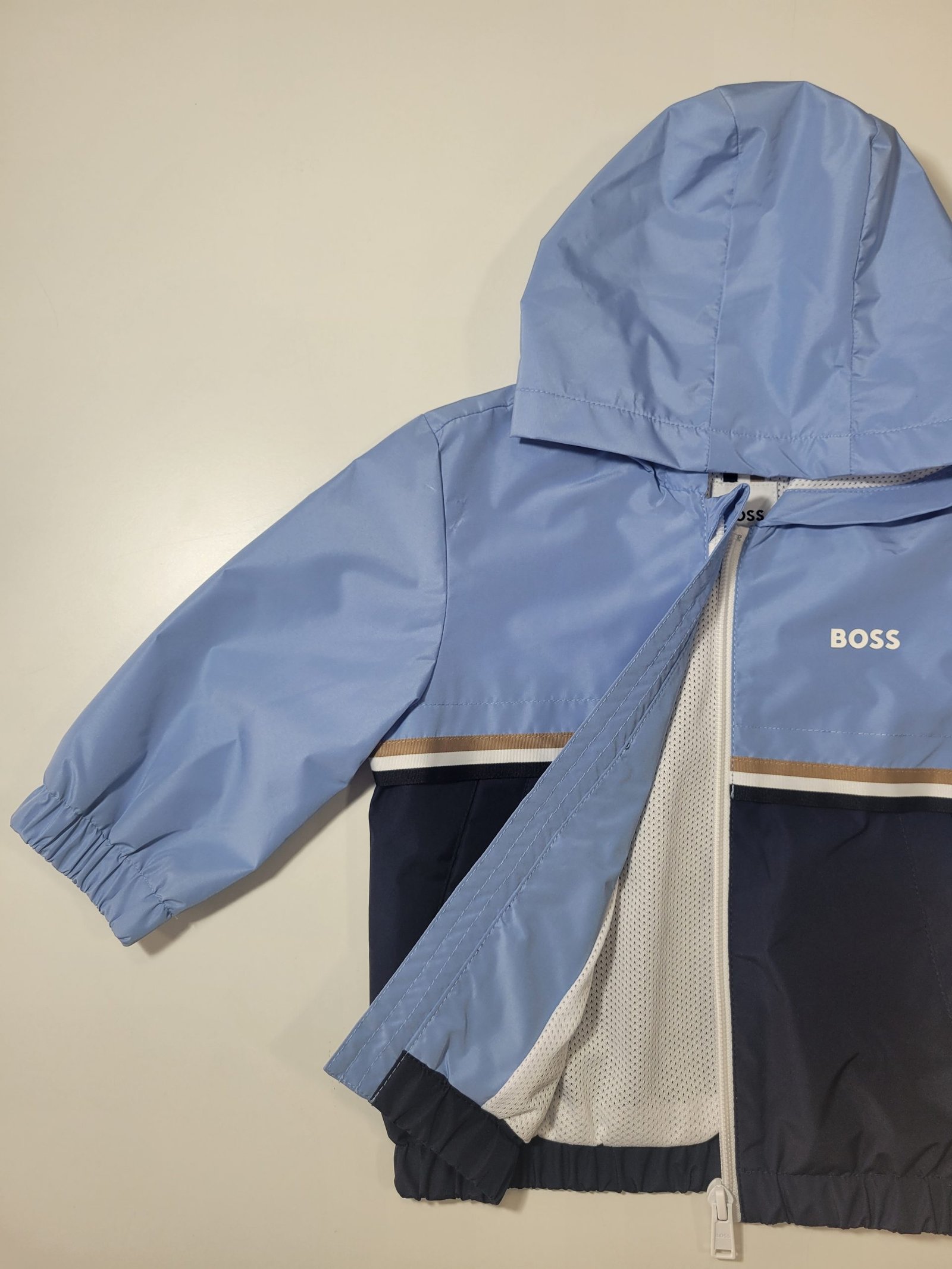 Design: Design simples bicolor com detalhe de listras horizontais e logótipo “BOSS” discreto no peito
