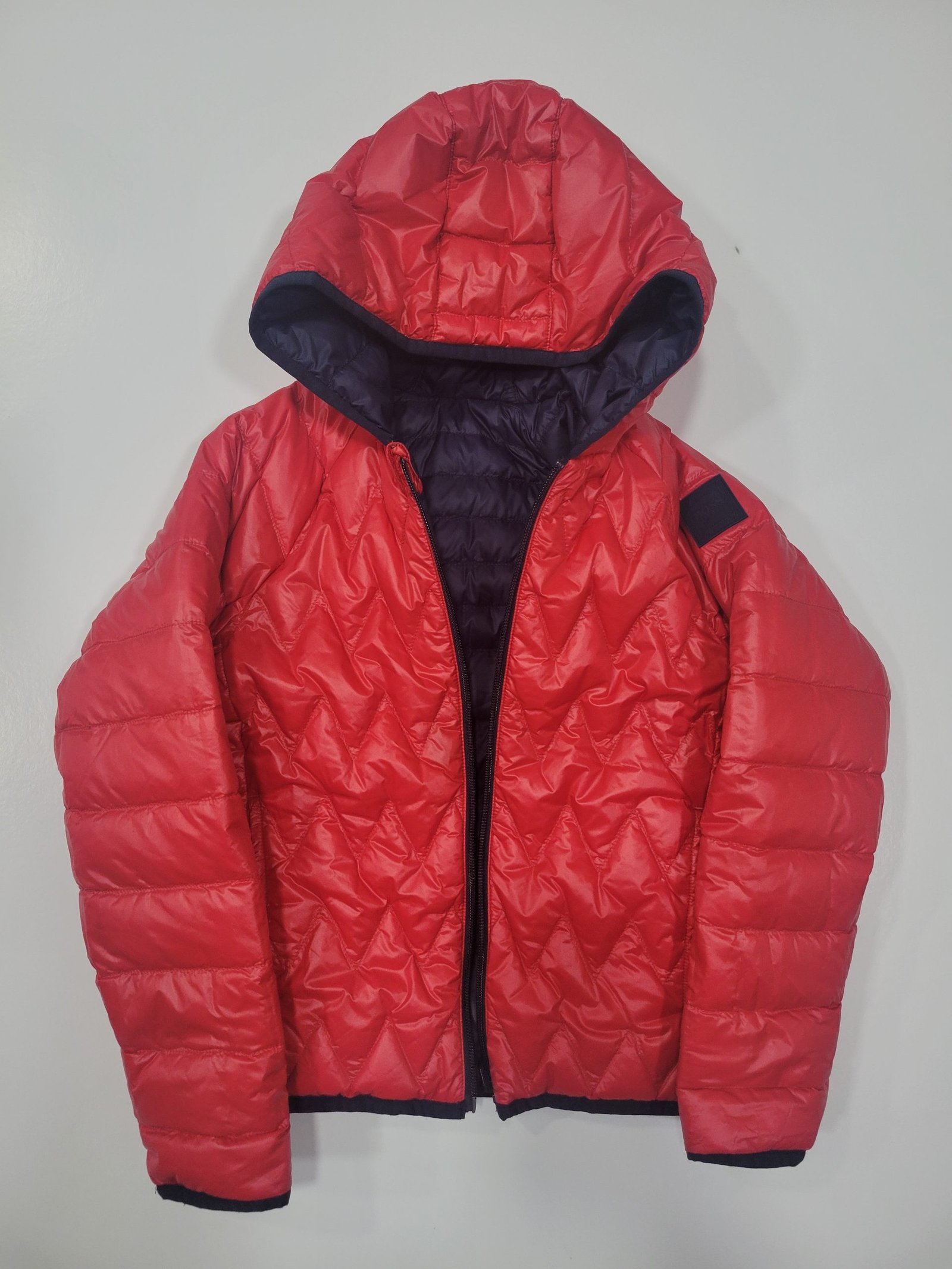 Ajuste: Reversível e impermeável com mangas compridas, bolsos laterais, zip frontal e carapuço amplo.