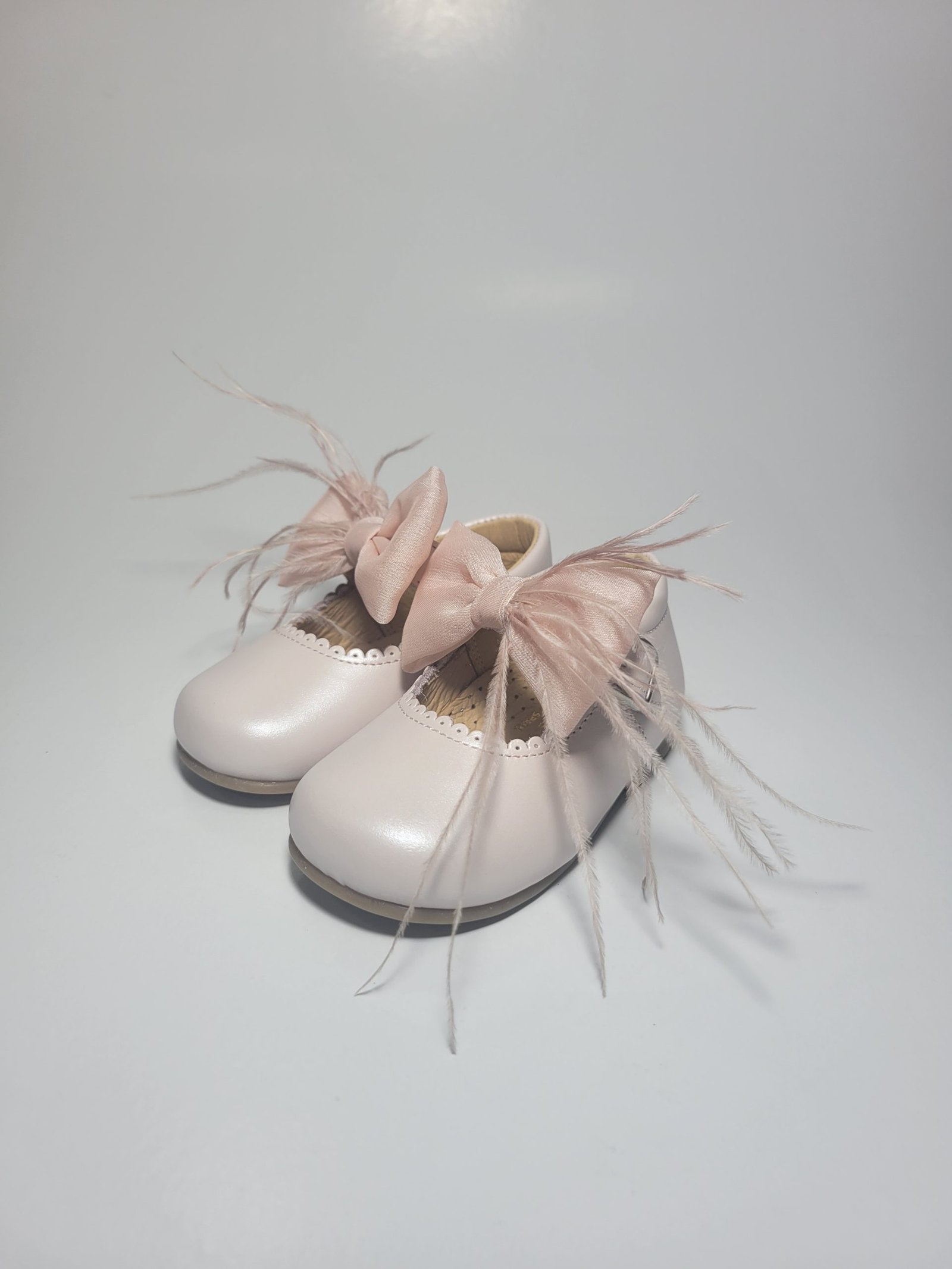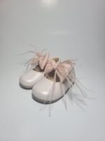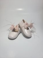 Sapato Clássico Rosa com Laço e Penas Decorativas