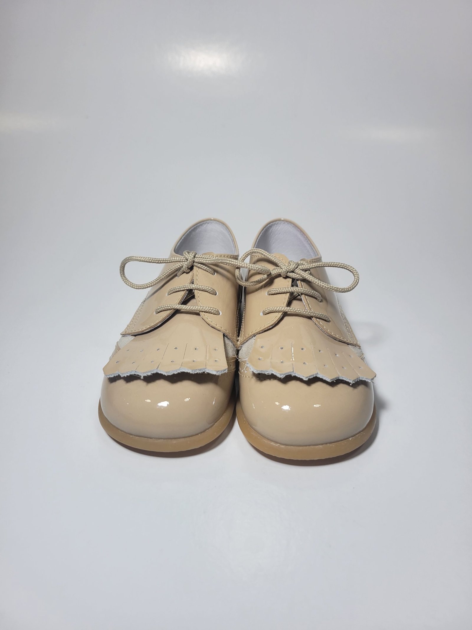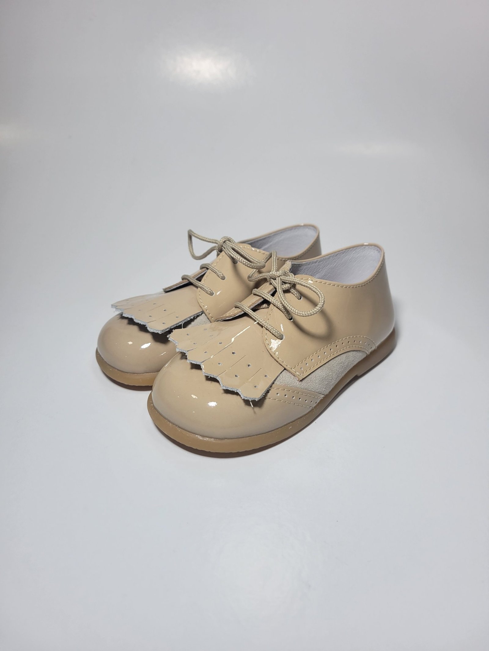 Sapato Bege multicamada verniz e camurça com detalhes pontilhados