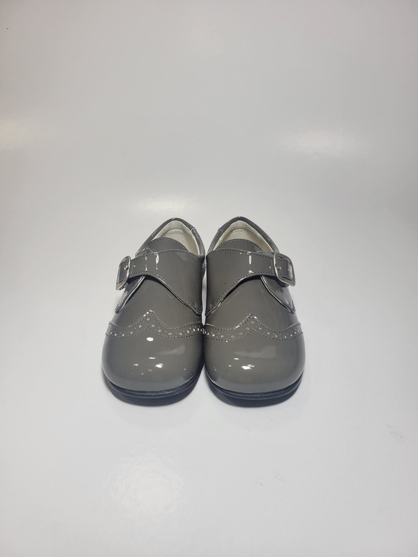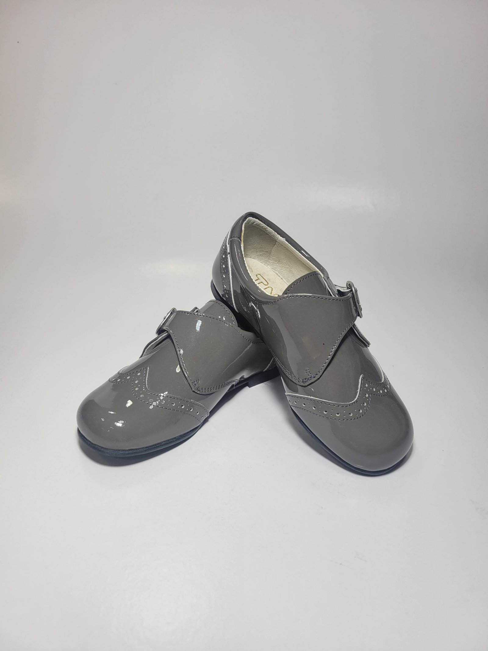 Sapato cinza com fivela de ajuste