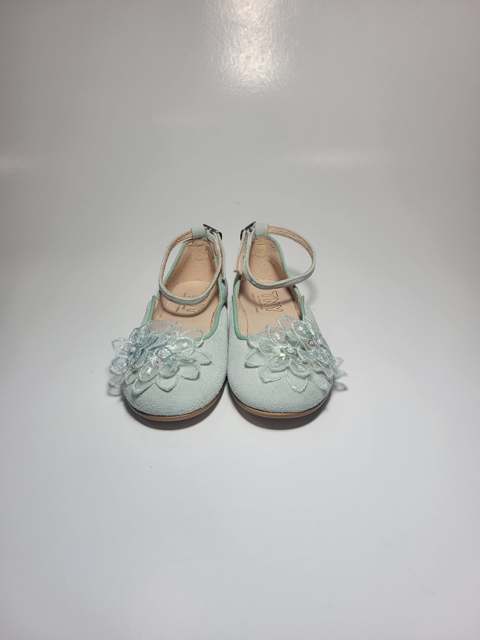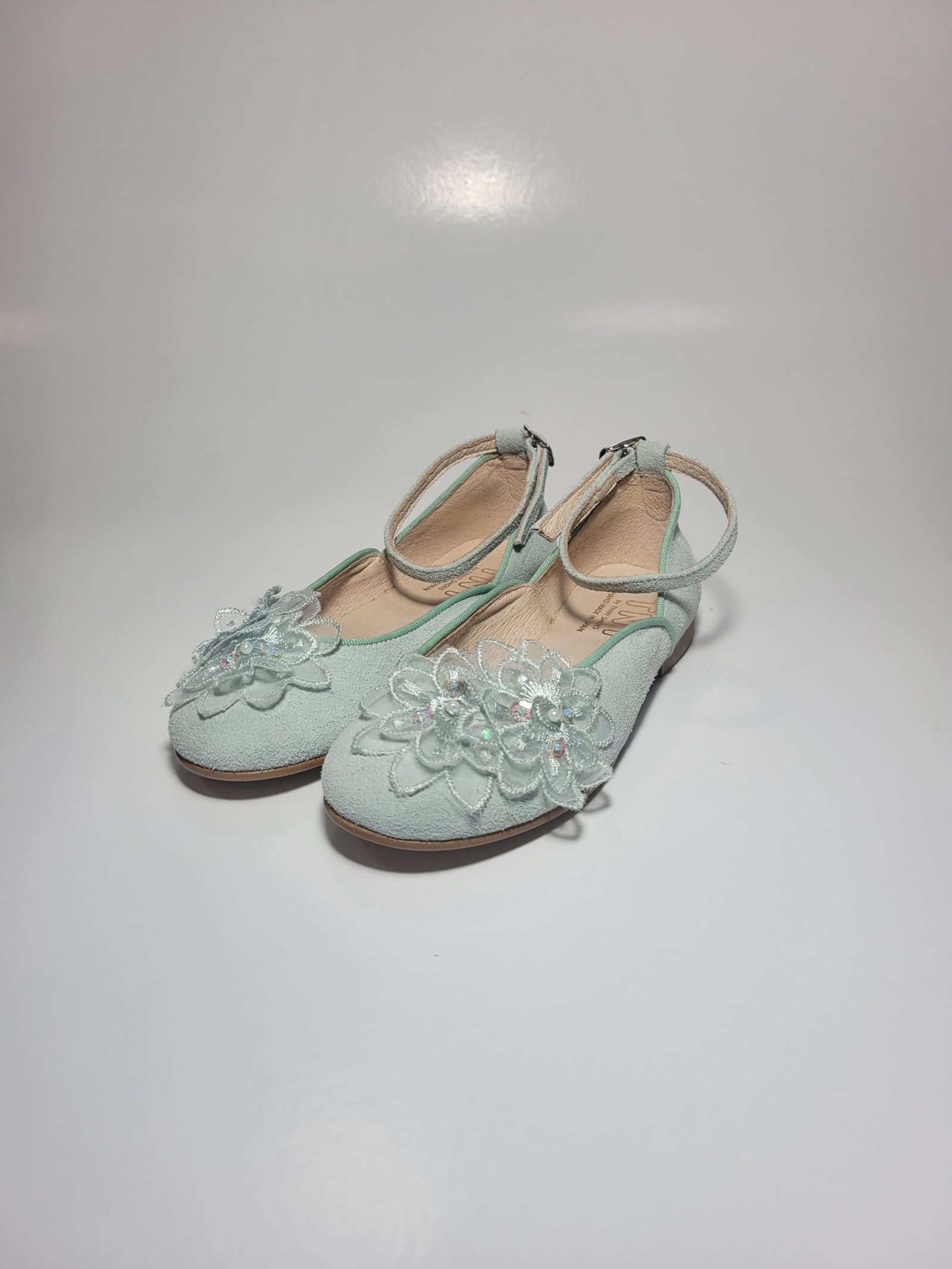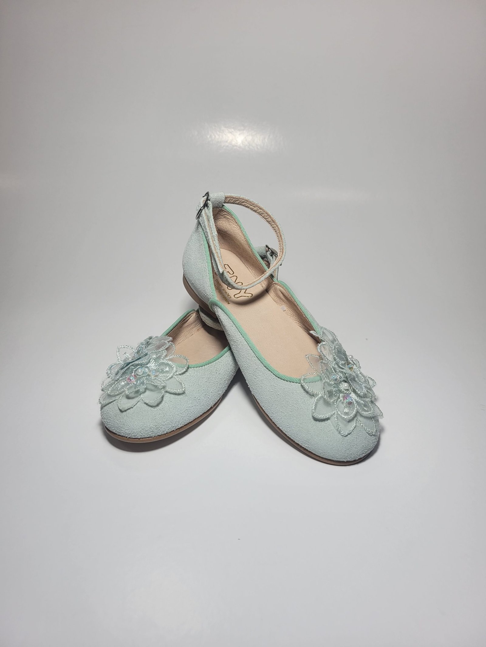 Sapato Clássico Verde Água com flor decorativa