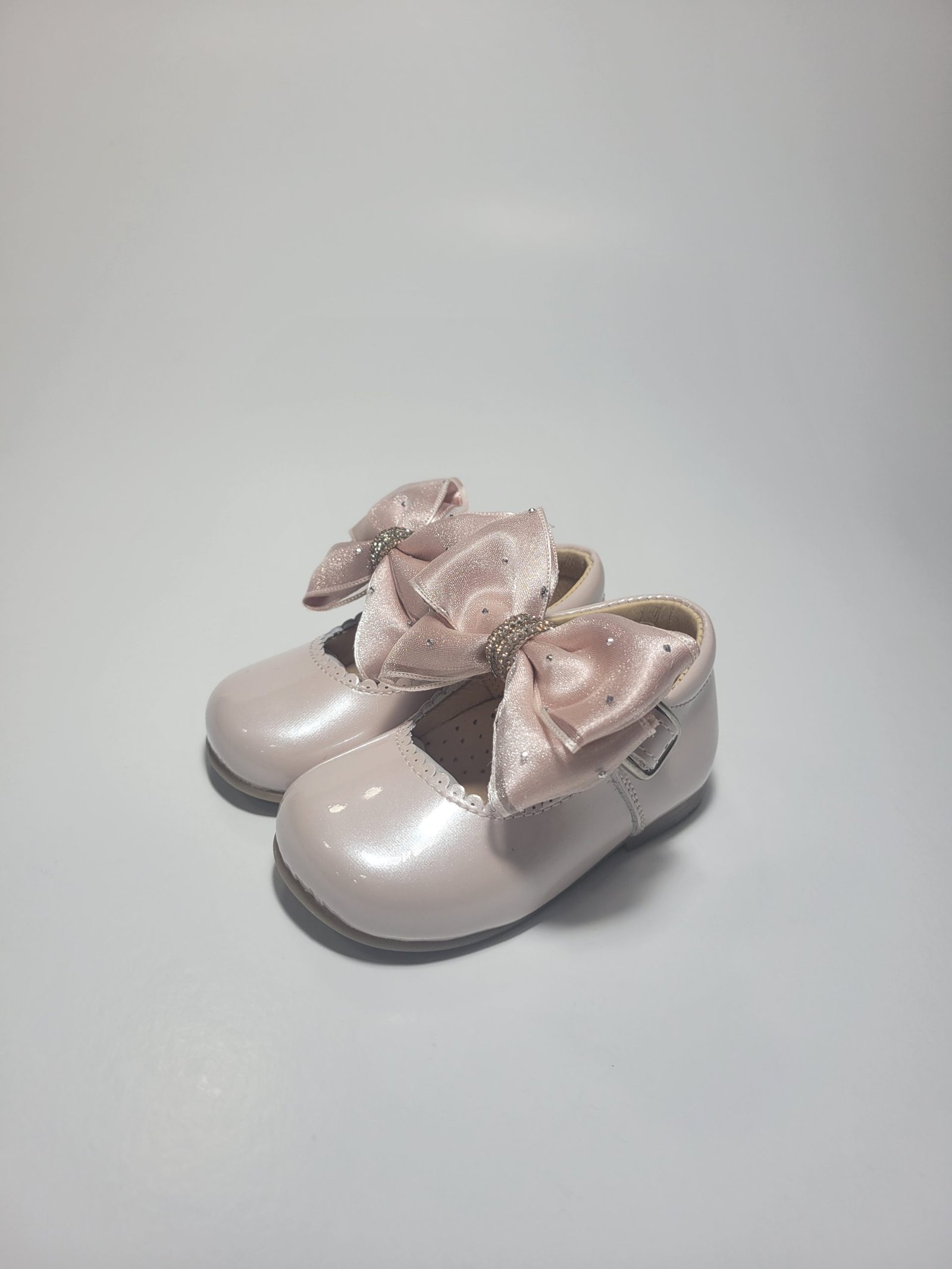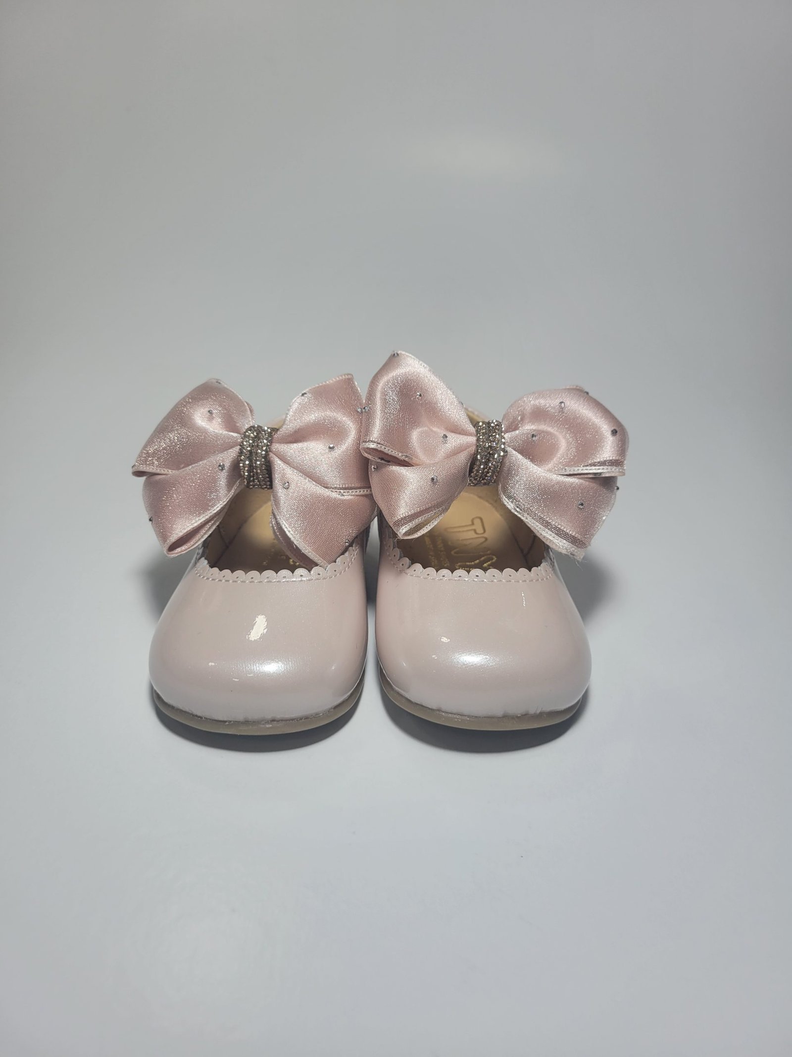 Sapato Clássico Rosa com fivela de ajuste e laços decorativos