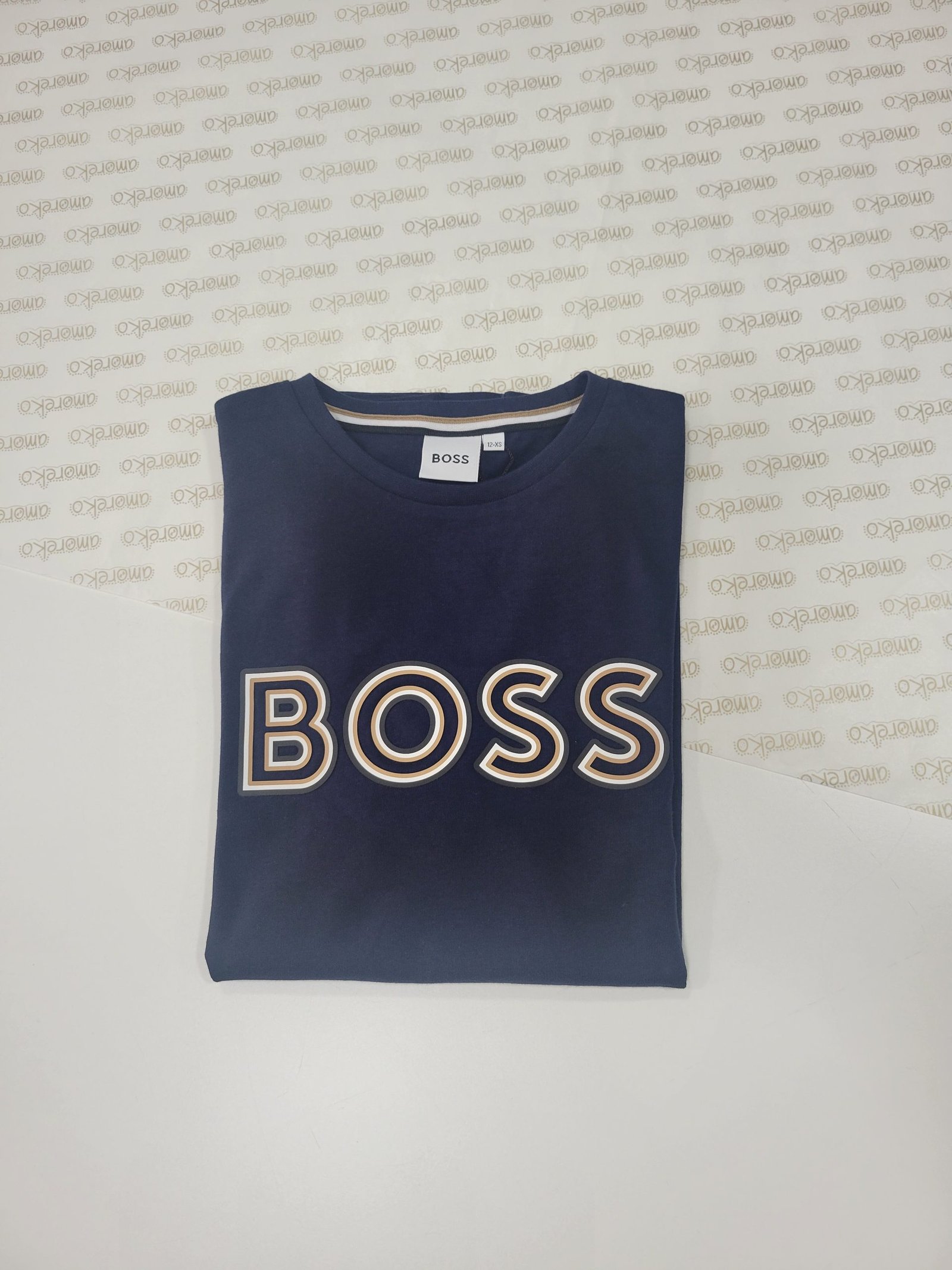 Design: Estampagem tricolor “Boss”, transmitindo um estilo reconhecível e estiloso