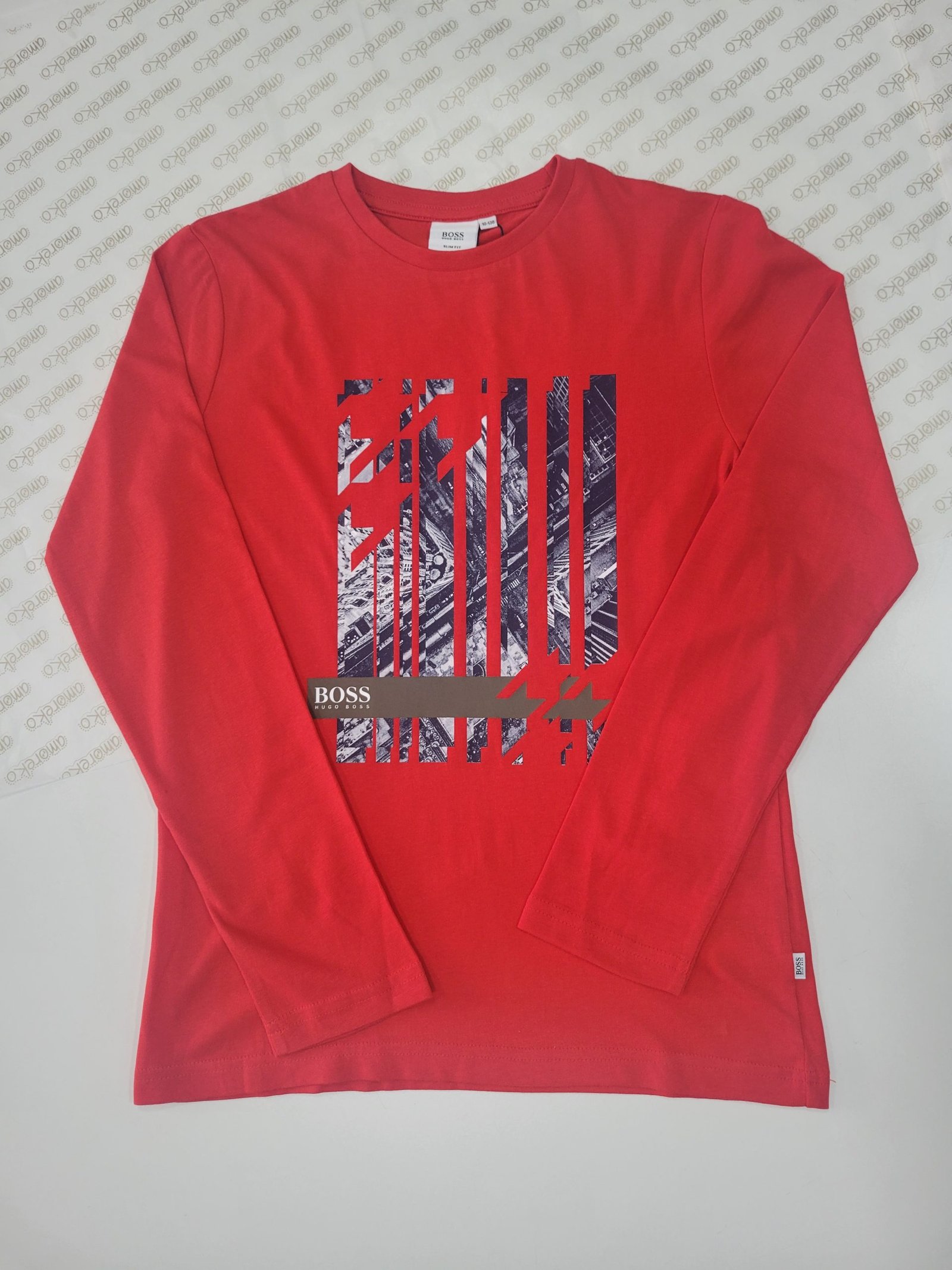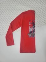 Camisola vermelha de manga comprida com detalhe em azul