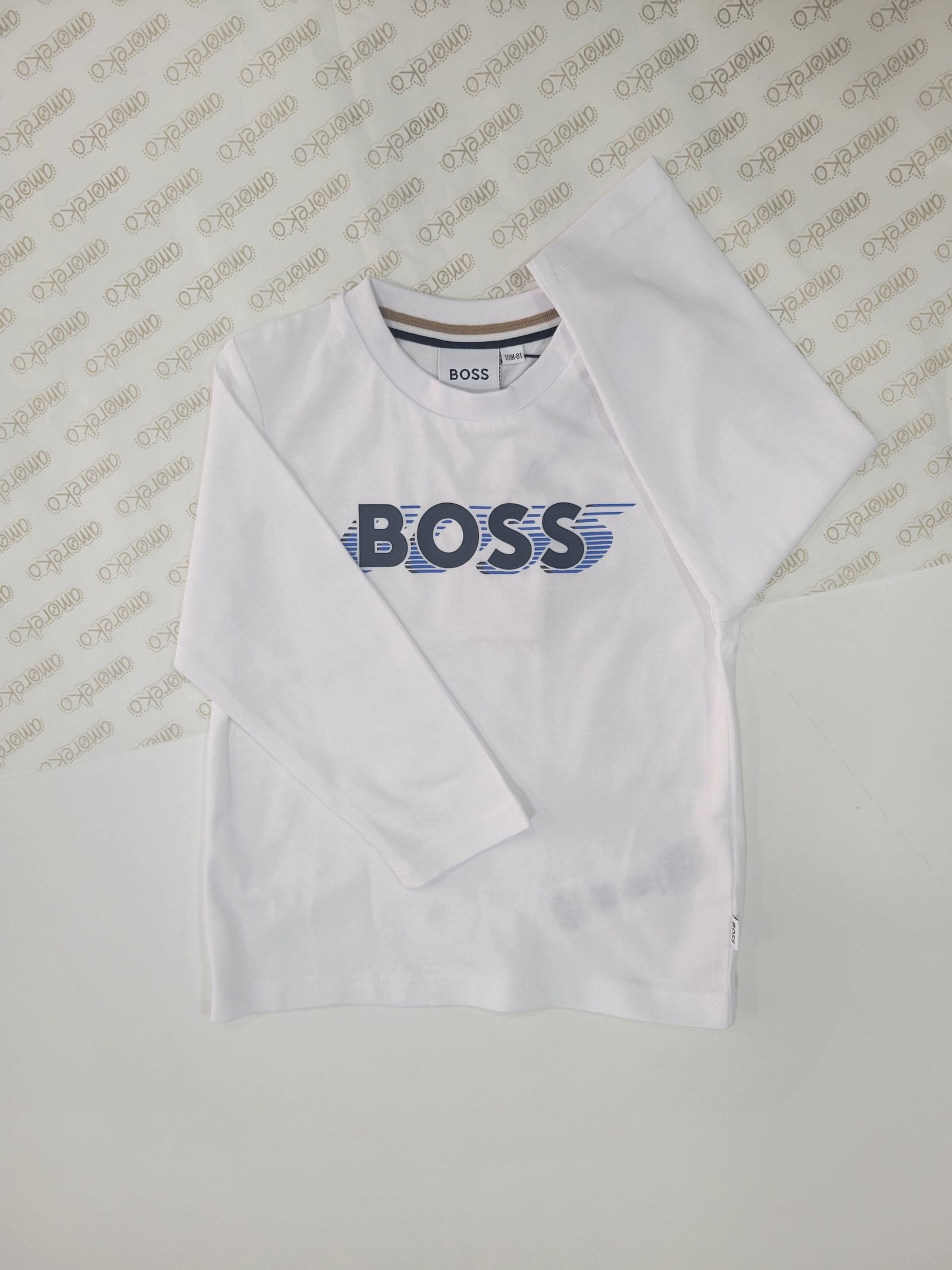 Design: Camisola branca com logo “Boss” em movimento, transmitindo um estilo reconhecível e moderno