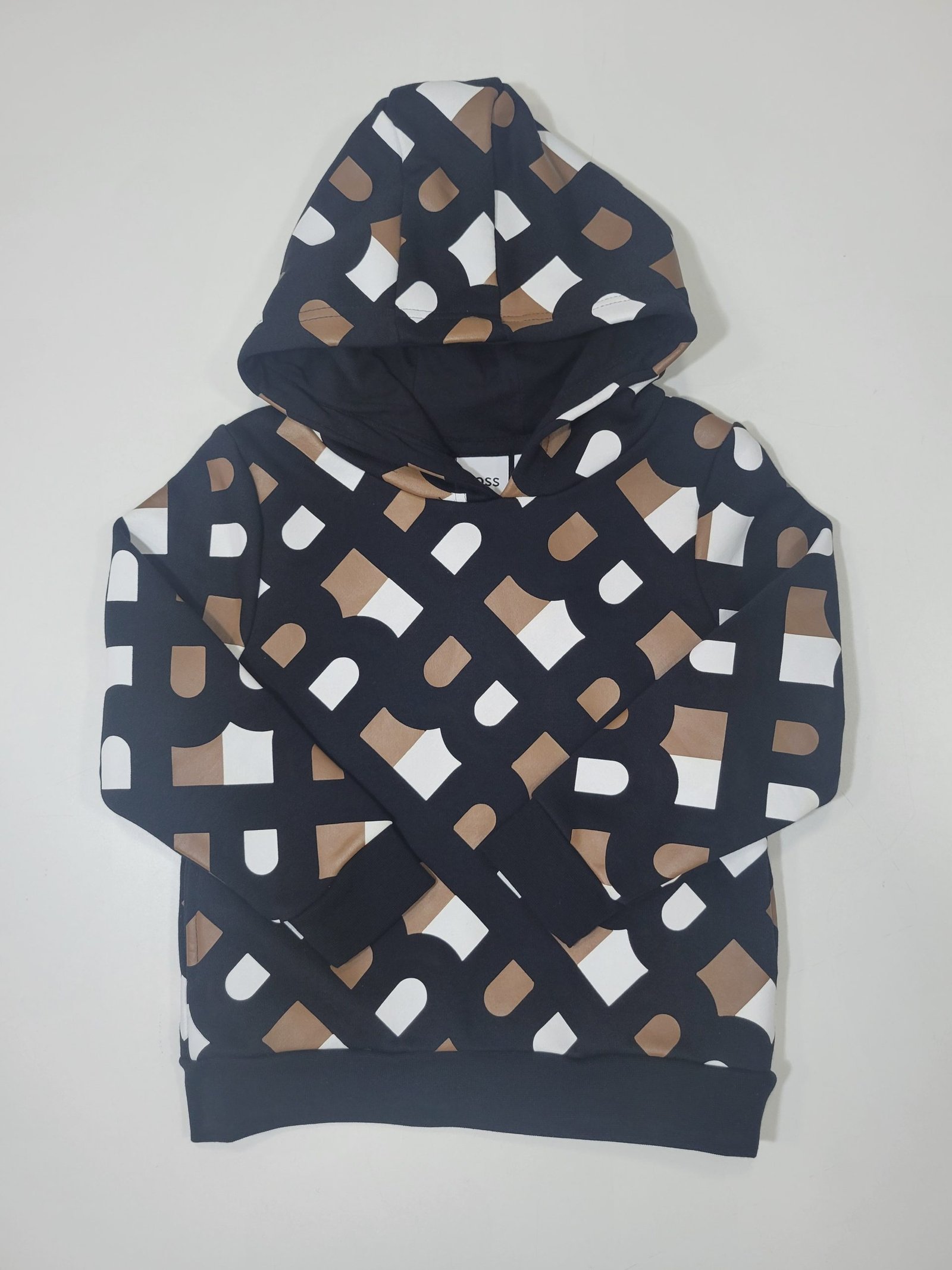 Cores: Negro com detalhes multicolor entre castanho e branco