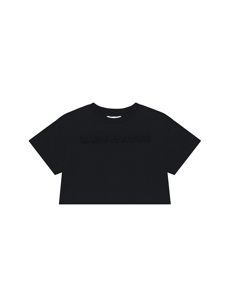 T-Shirt Preta com Logo em Brilhantes no Peito