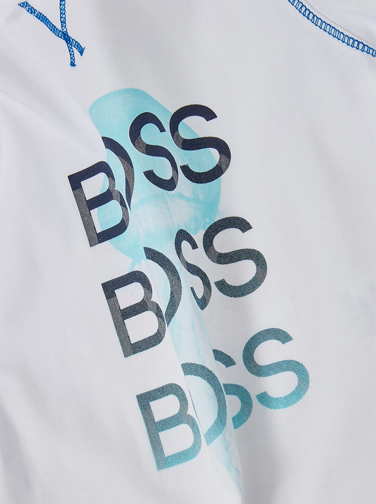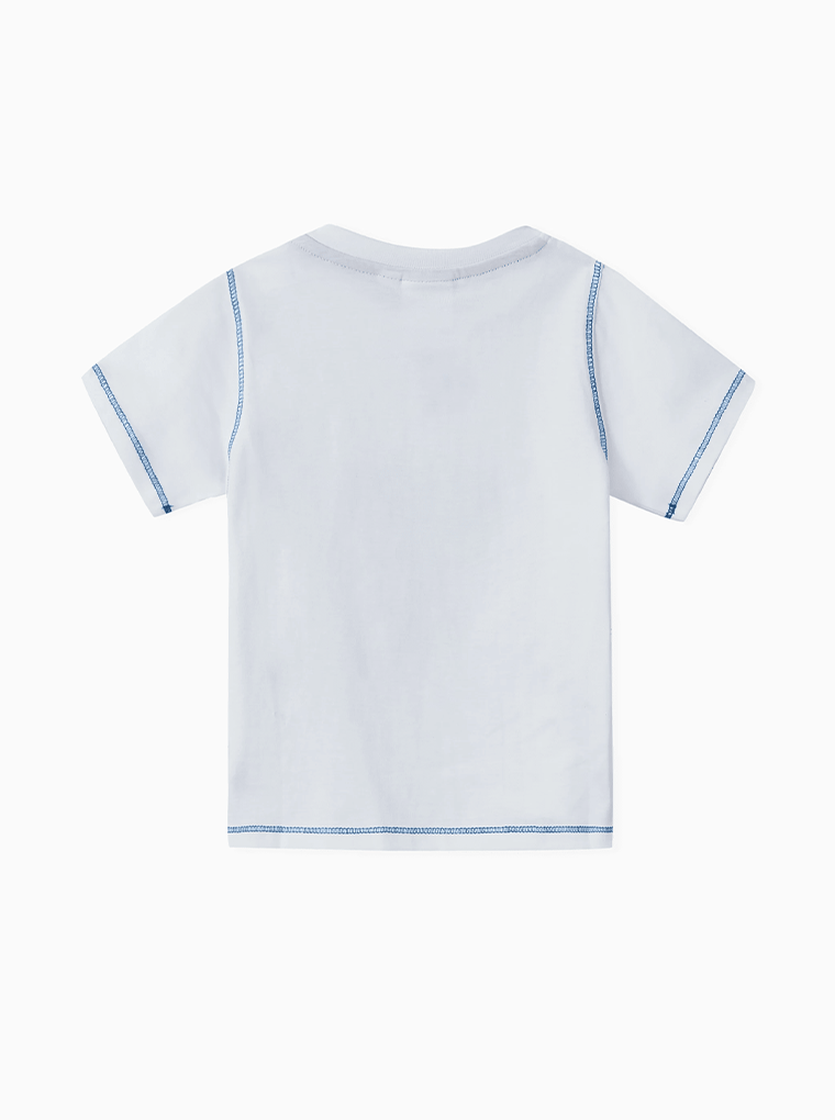 Ajuste: Corte regular, gola arredondada, com mangas curtas e logo frontal