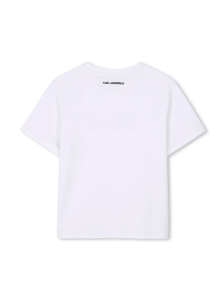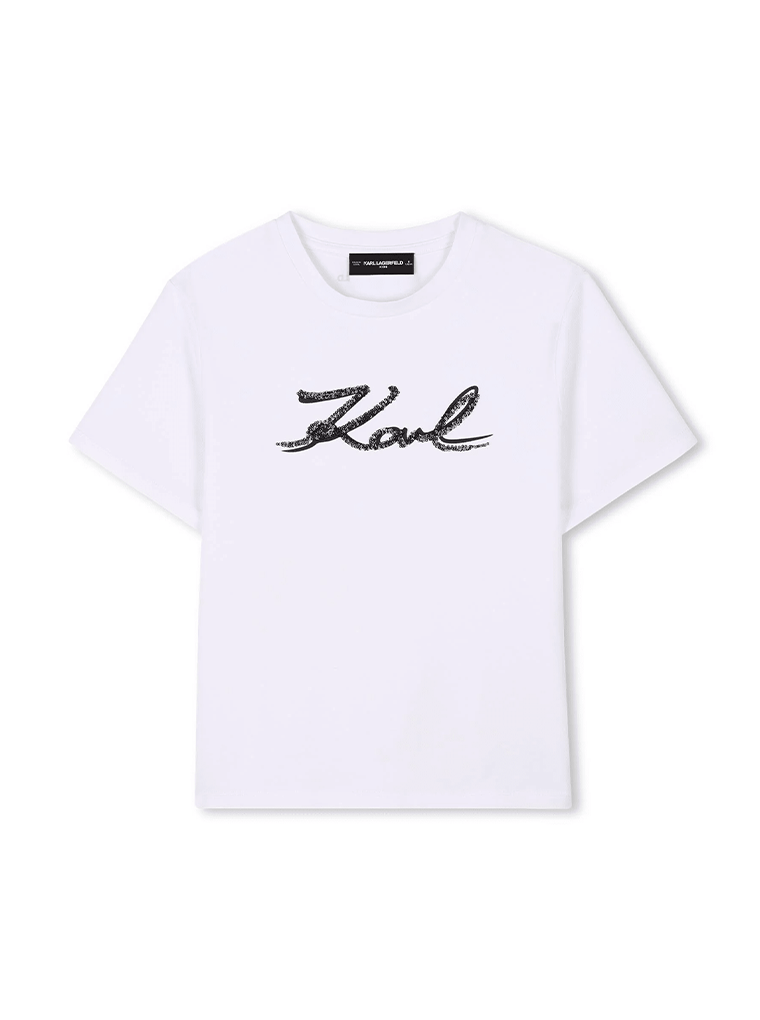 T-Shirt Branca com Assinatura “Karl” em Brilhantes
