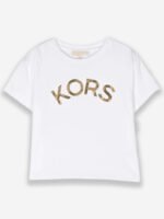 T-Shirt Branca com Letras “KORS” Douradas Metálicas