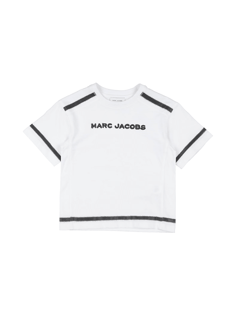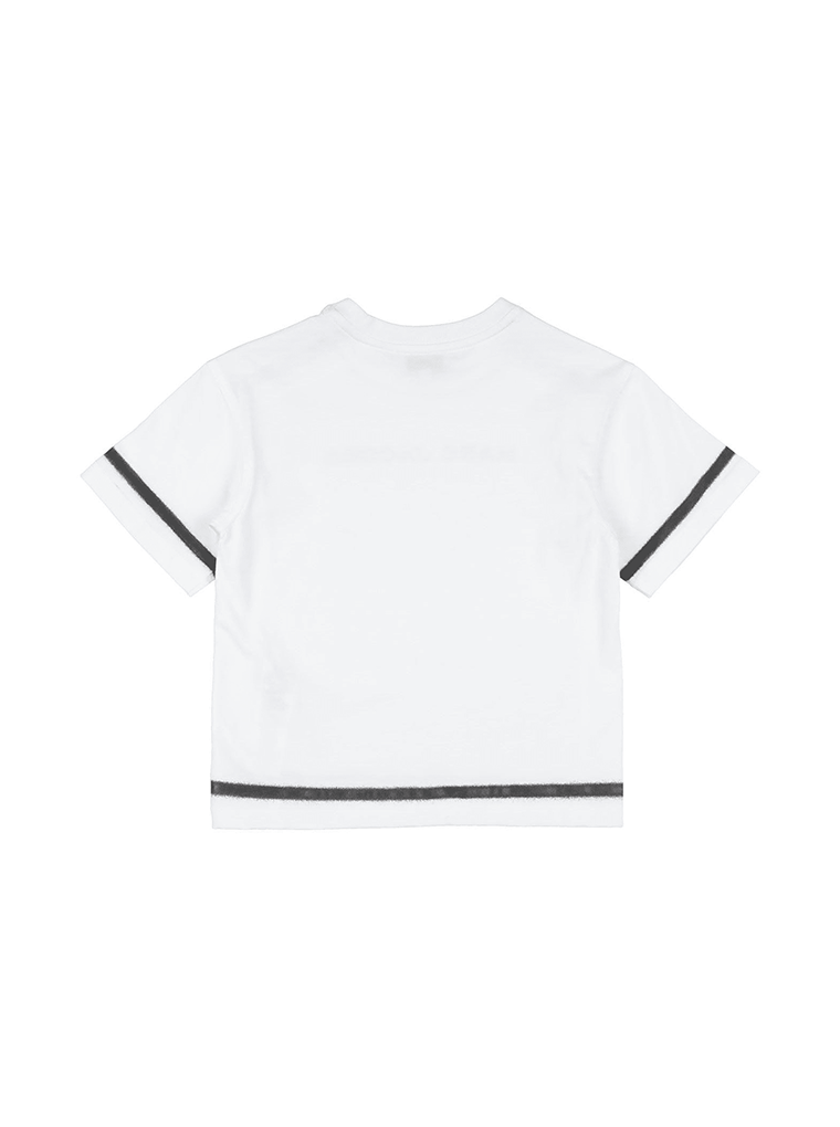 T-Shirt Branca com Logo e Linhas em Efeito Grafitti