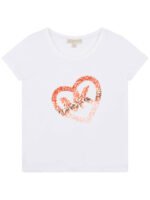 T-Shirt Branca com Coração e Logo “MK” Embutido em Brilhantes