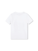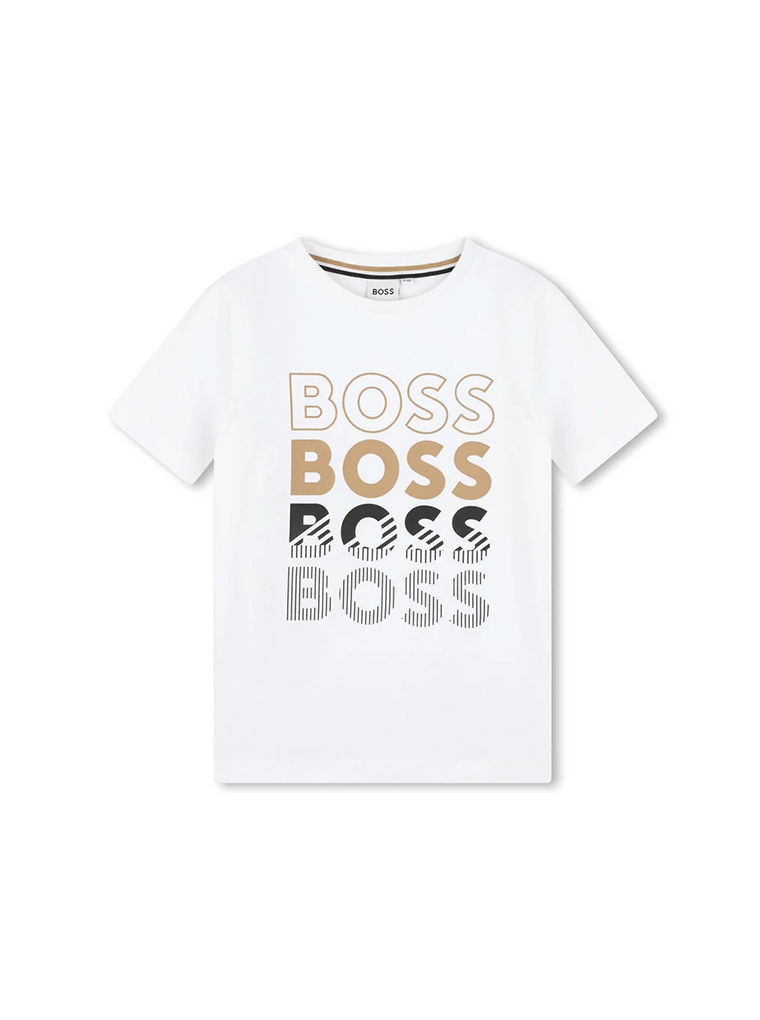 Ajuste: Corte regular, gola arredondada, com mangas curtas e logo frontal