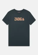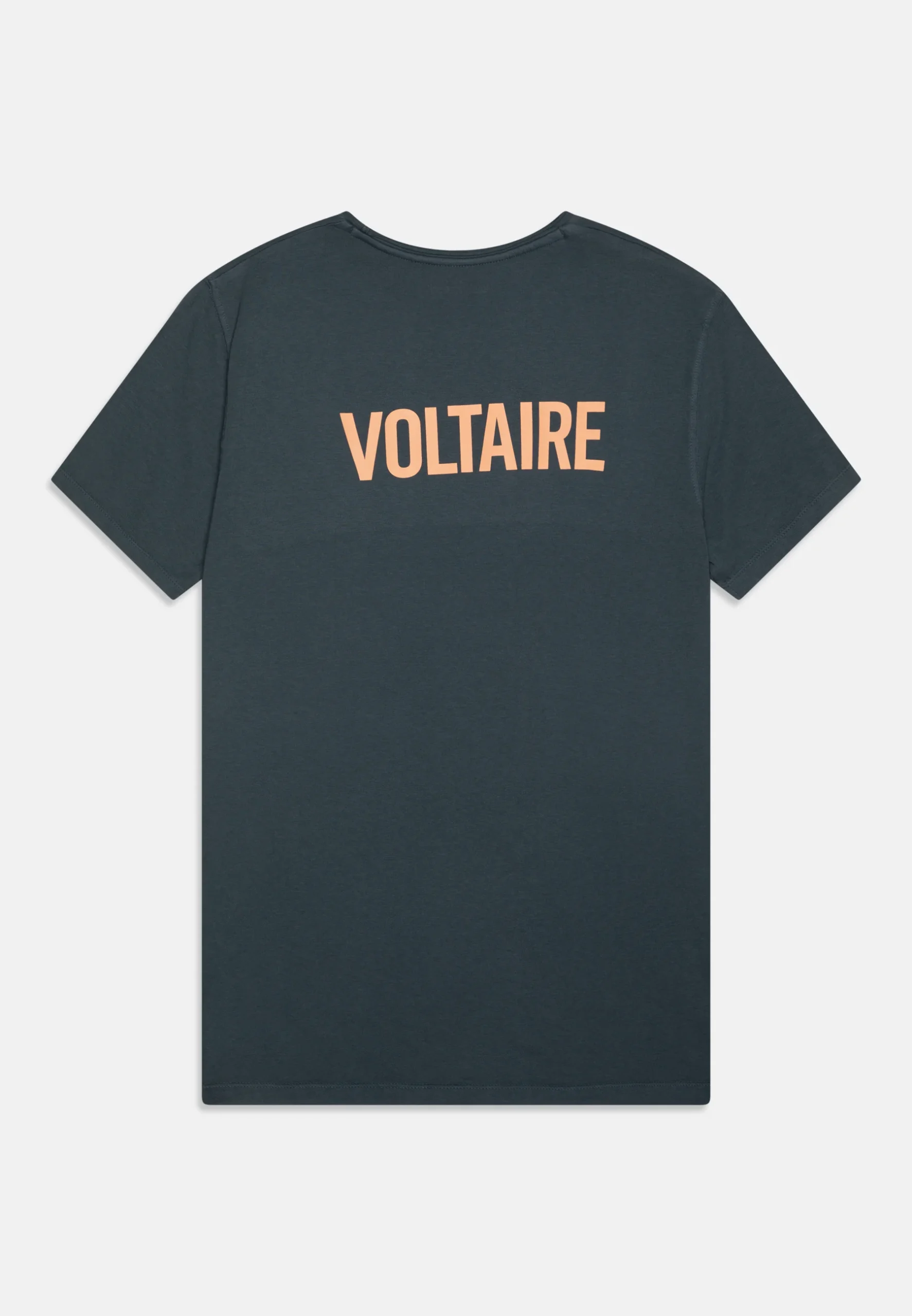 T-Shirt Cinza escura com letras em Laranja
