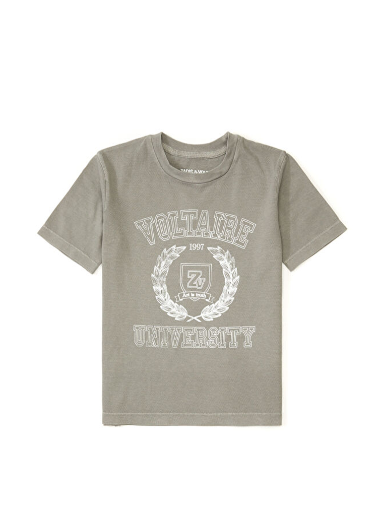 Ajuste: Corte regular, gola arredondada, com mangas curtas e logo frontal