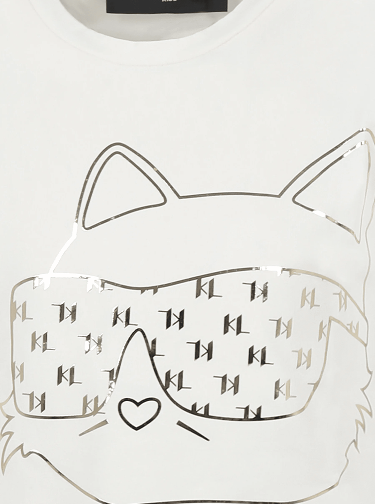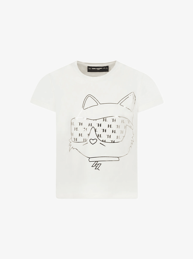 T-shirt Marfim com Ilustração do Perfil de um Gato