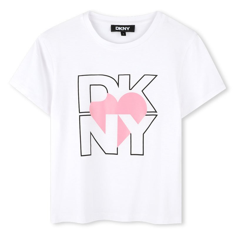 T-Shirt Branca com Logo frontal e Coração Rosa
