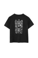 T-Shirt Preta com Logo Frontal e Ilustração em Lineart Traseira