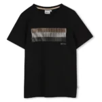 T-Shirt Preta com Listras Multicoloridas