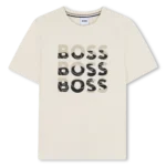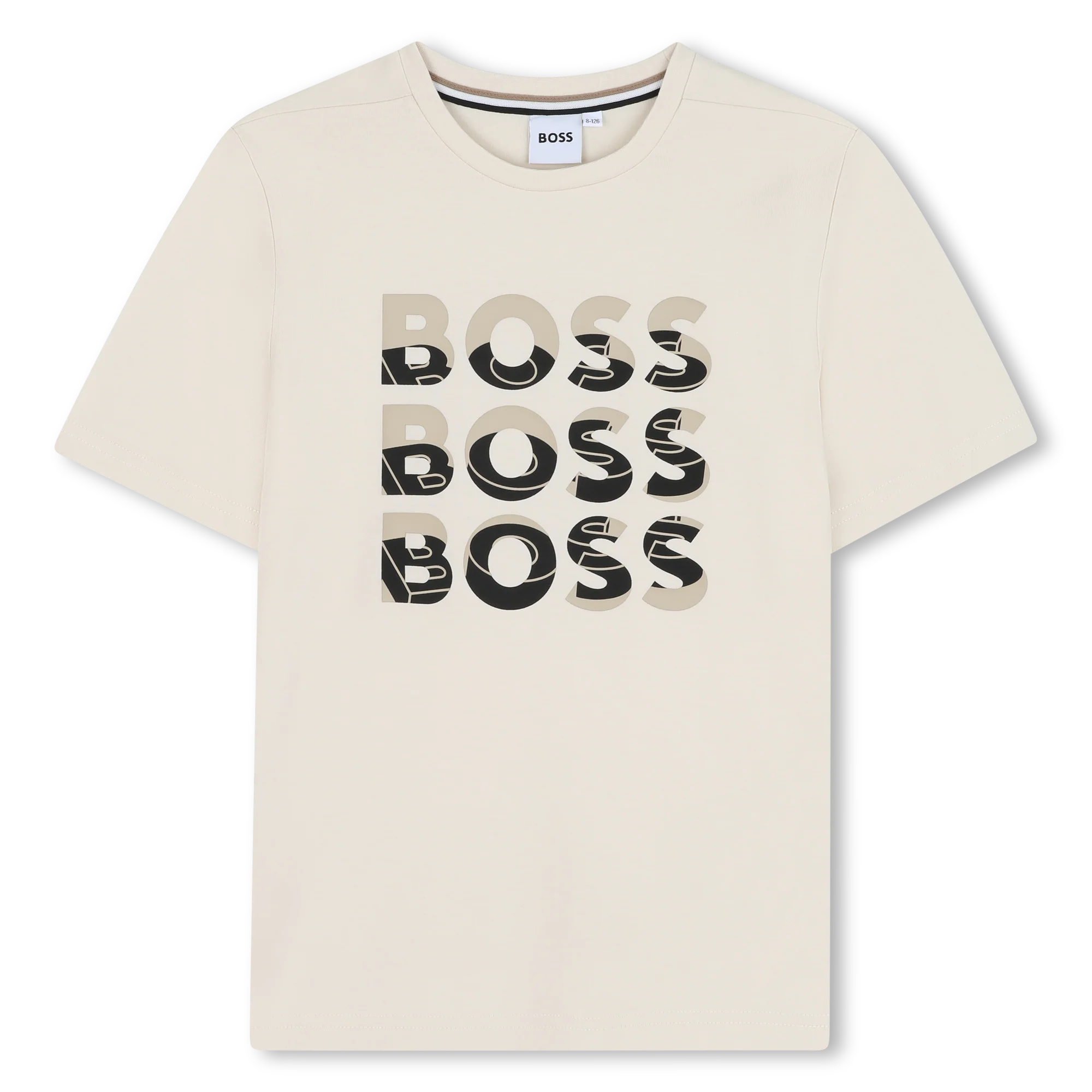 T-Shirt Marfim com Logo BOSS Sobreposto