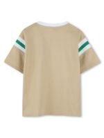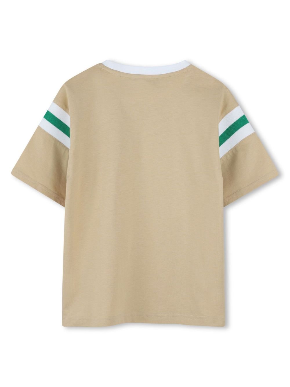 Design: Design simples com logo frontal e faixas coloridas nas mangas
