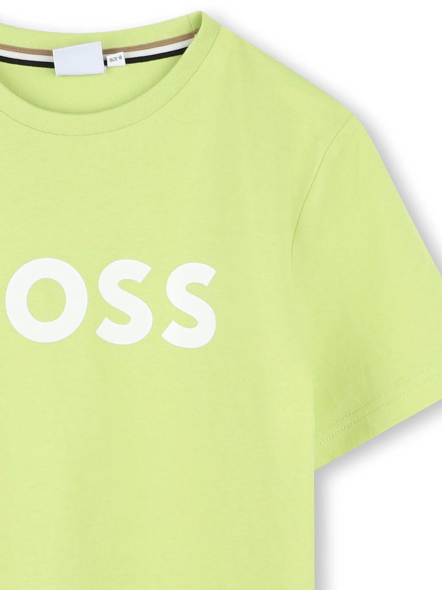 T-Shirt Verde Lima com Logo “Boss” Branco
