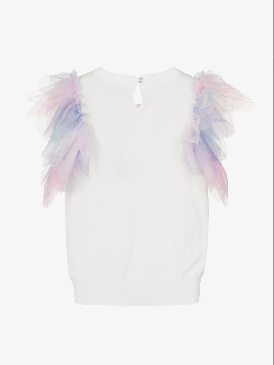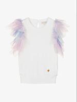 T-Shirt Top com Mangas Multicoloridas em Tule
