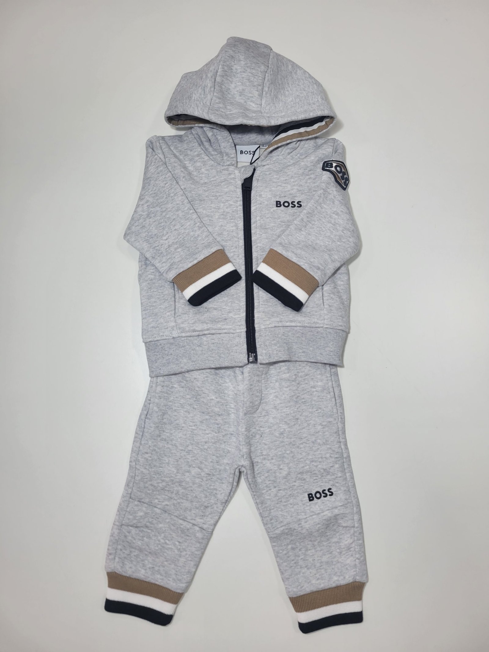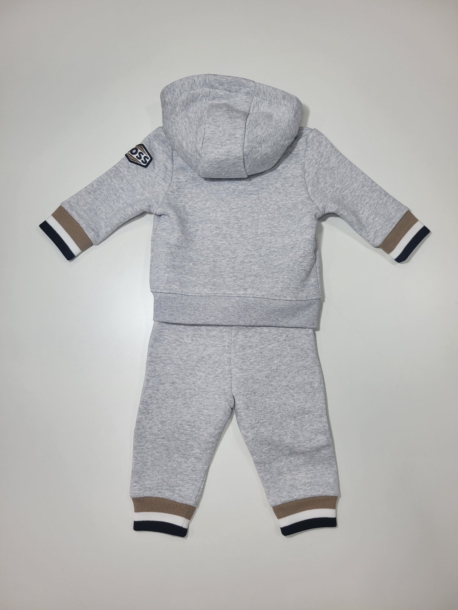 Conjunto de Casaco e Calças Cinzento com detalhes tricolor