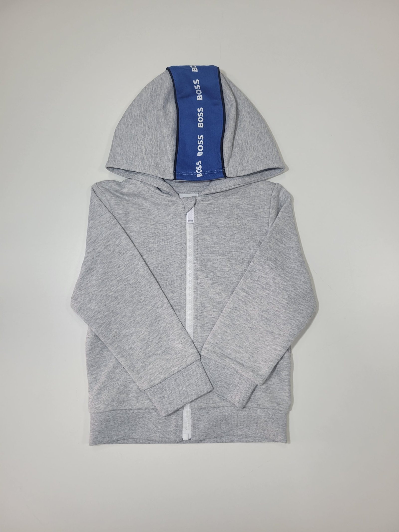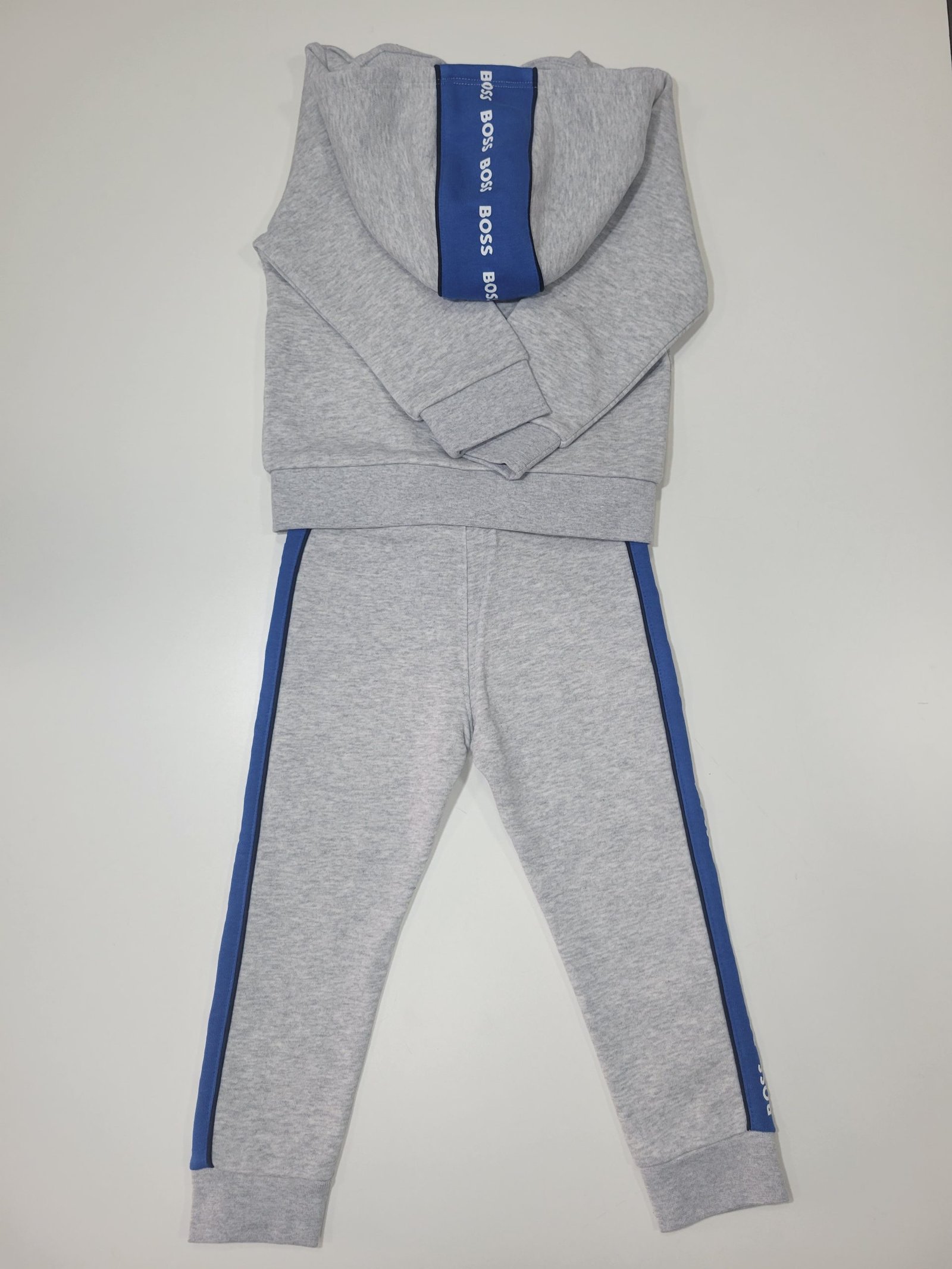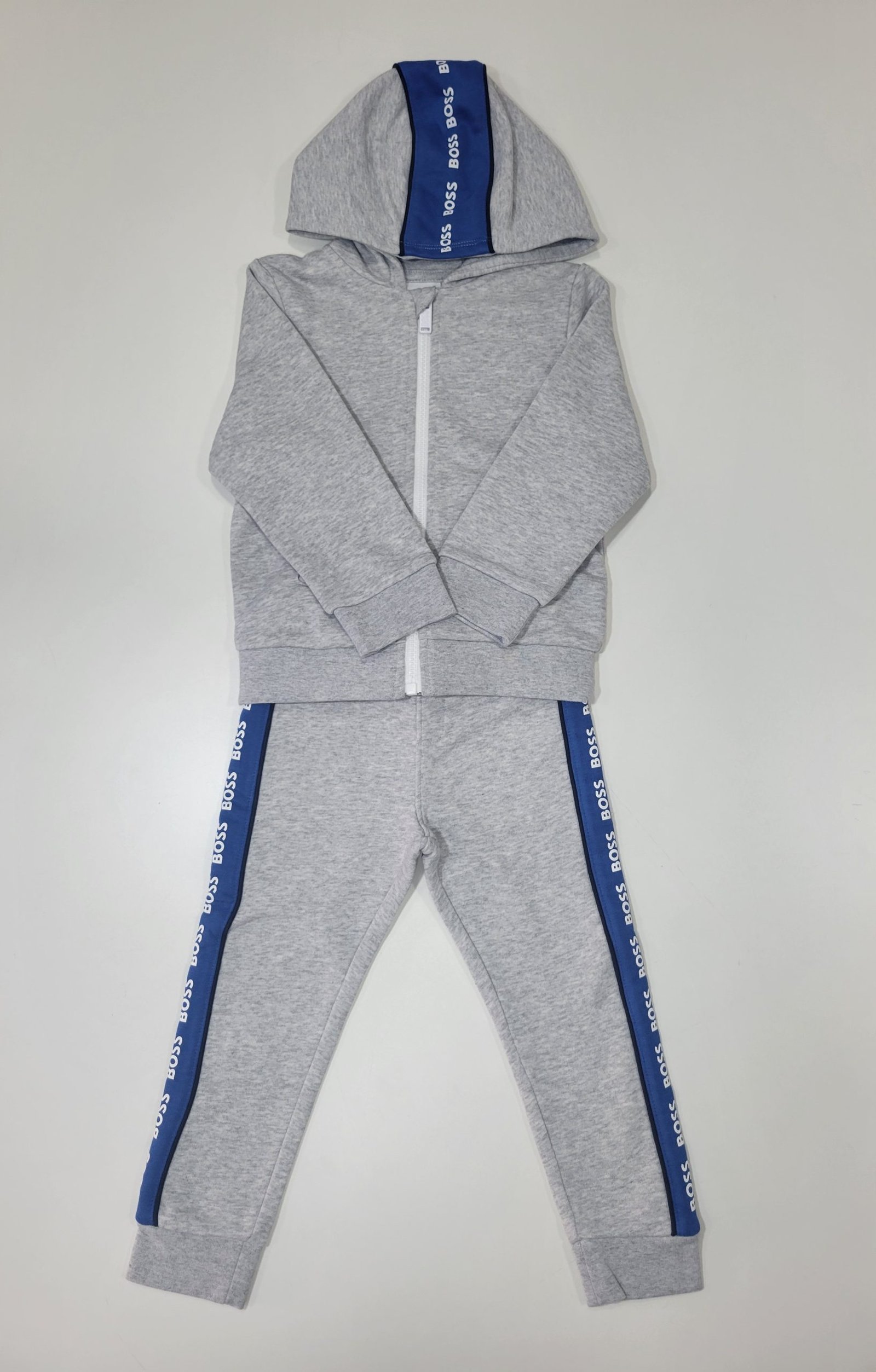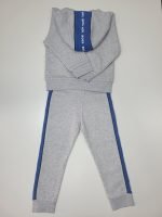 Conjunto de Casaco e Calças Cinzento com detalhes em azul e branco