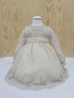 Design: Detalhes com padrões em renda no corpo e mangas, fita de ajuste na cintura