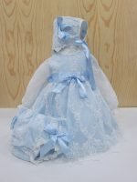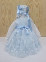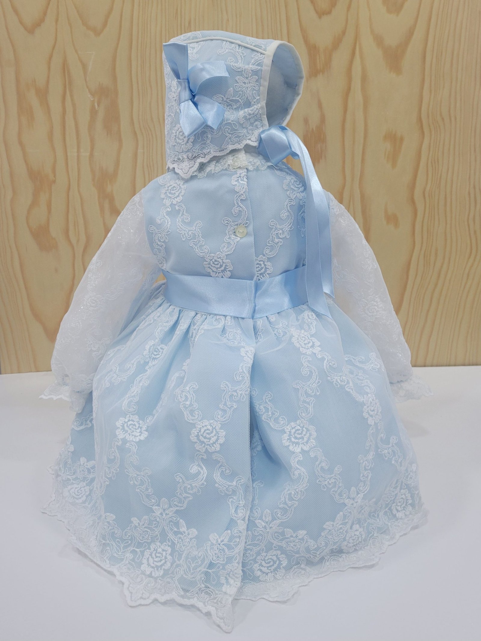 Design: Detalhes com padrões rendados no corpo, mangas, capota e braguita, e laços decorativos