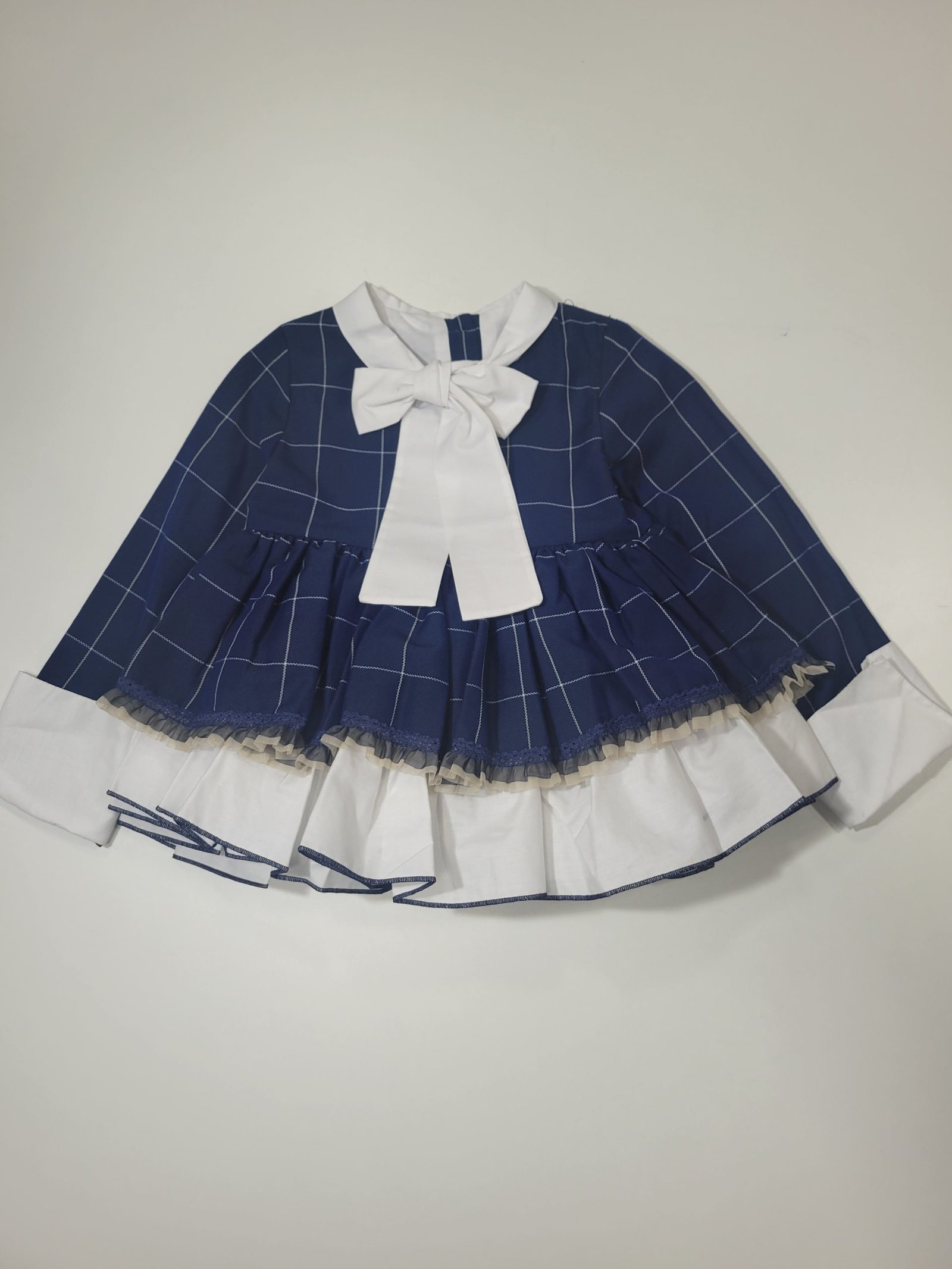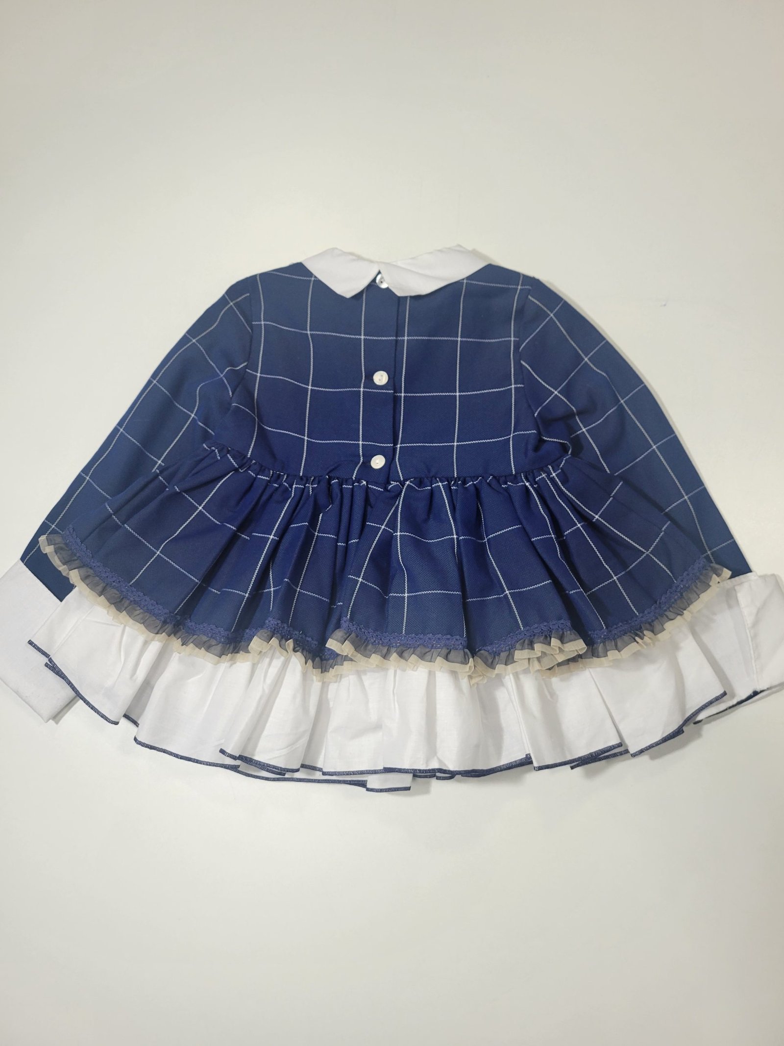 Vestido azul com padrão quadriculado