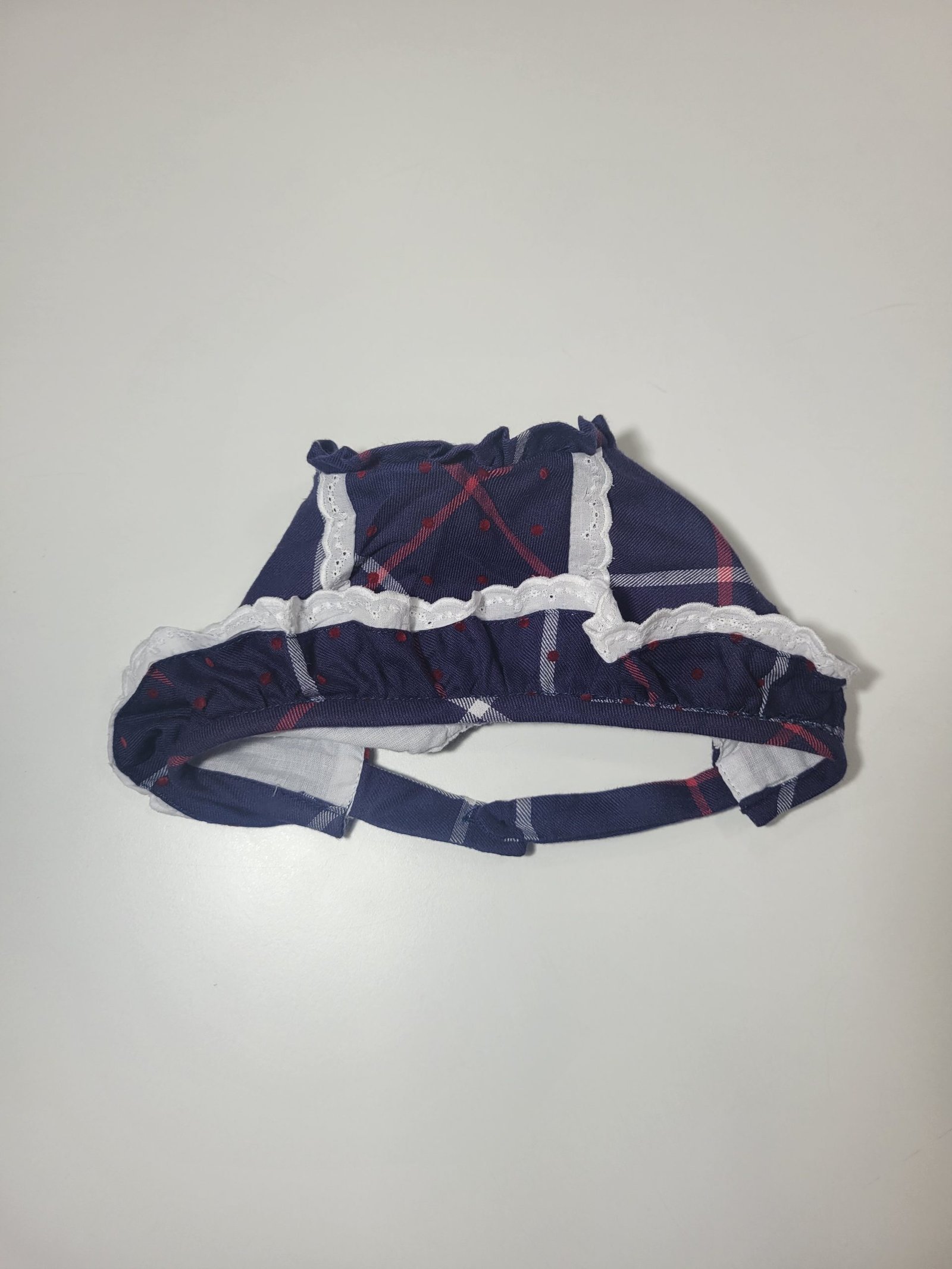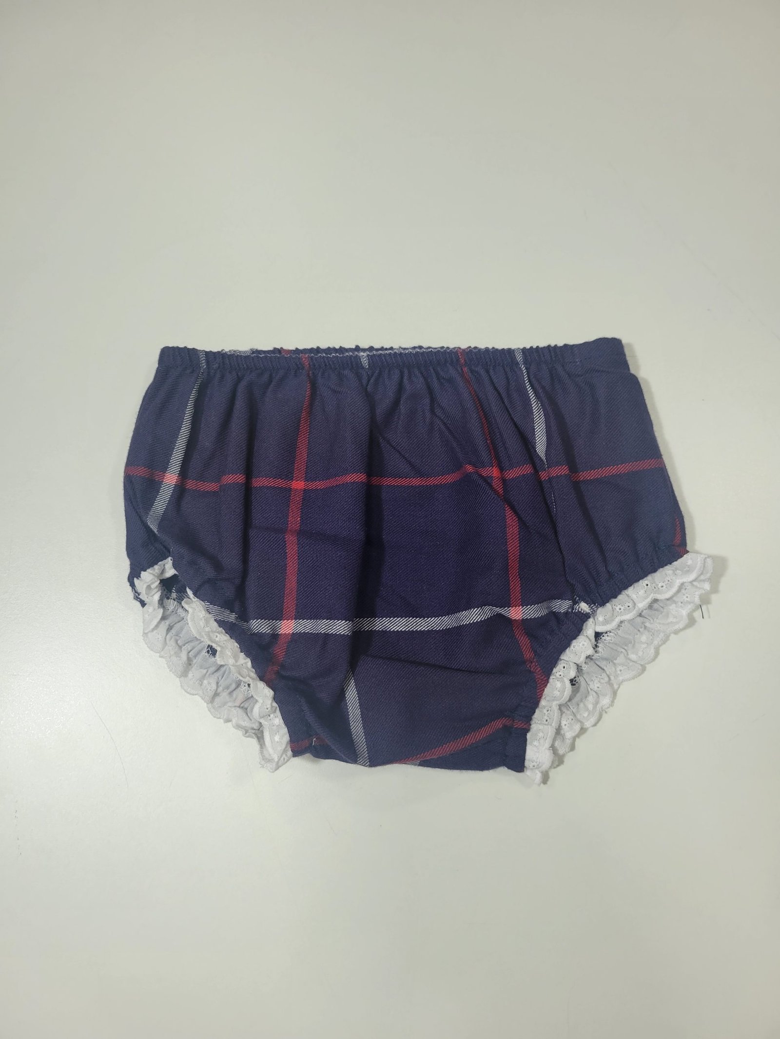 Design: Padrão xadrez com detalhes de renda brancos, dando um toque sofisticado e moderno.