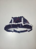 Cores: Azul-Marinho com detalhes bicolores em vermelho e branco