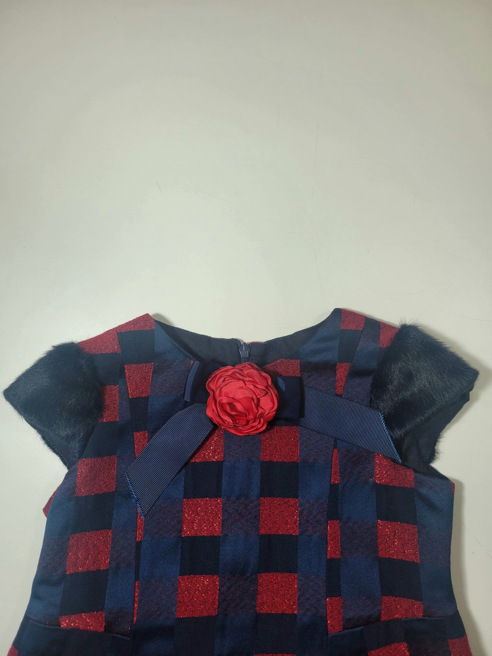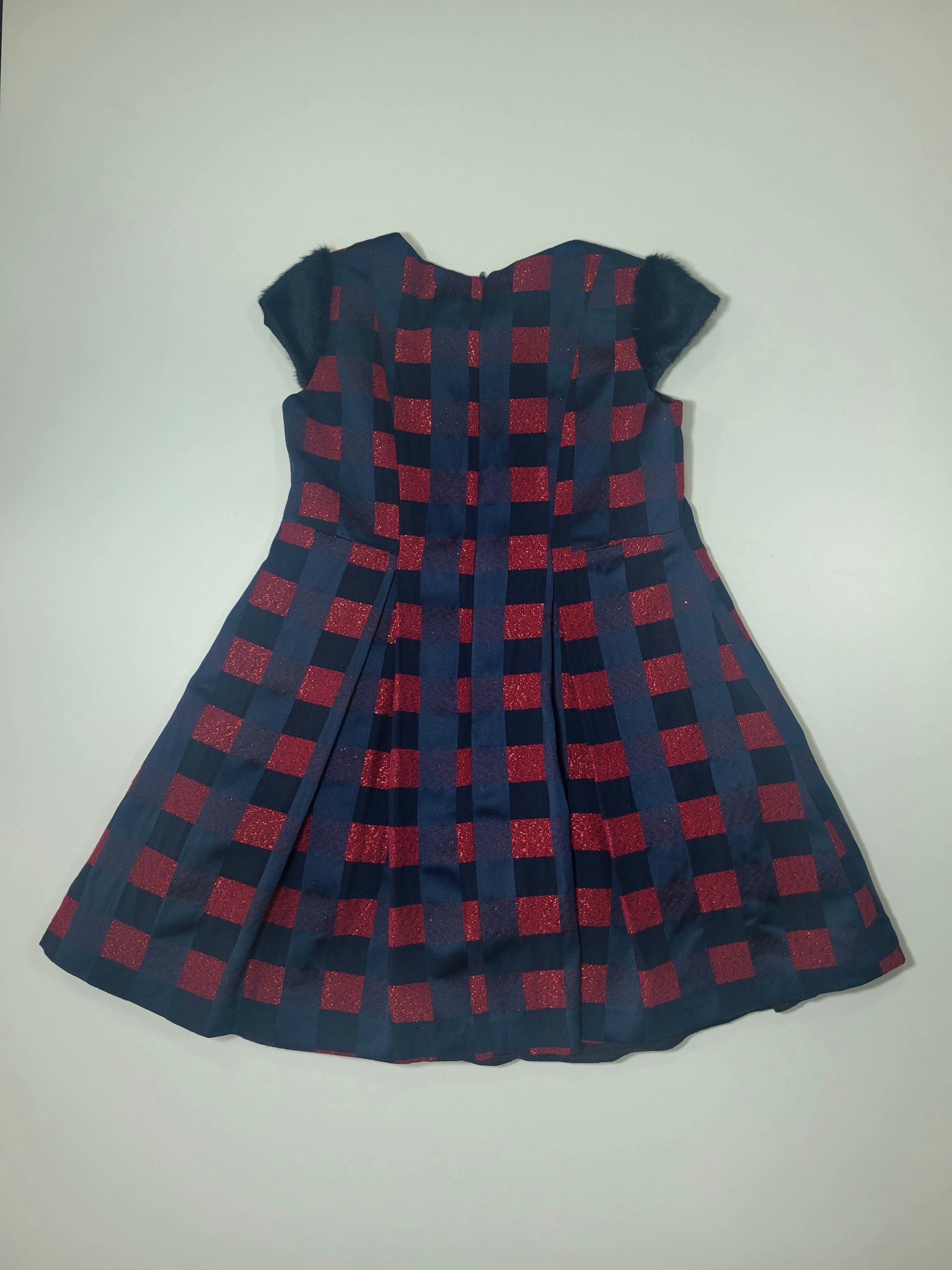 Vestido Azul Marinho com Padrão Xadrez Tricolor