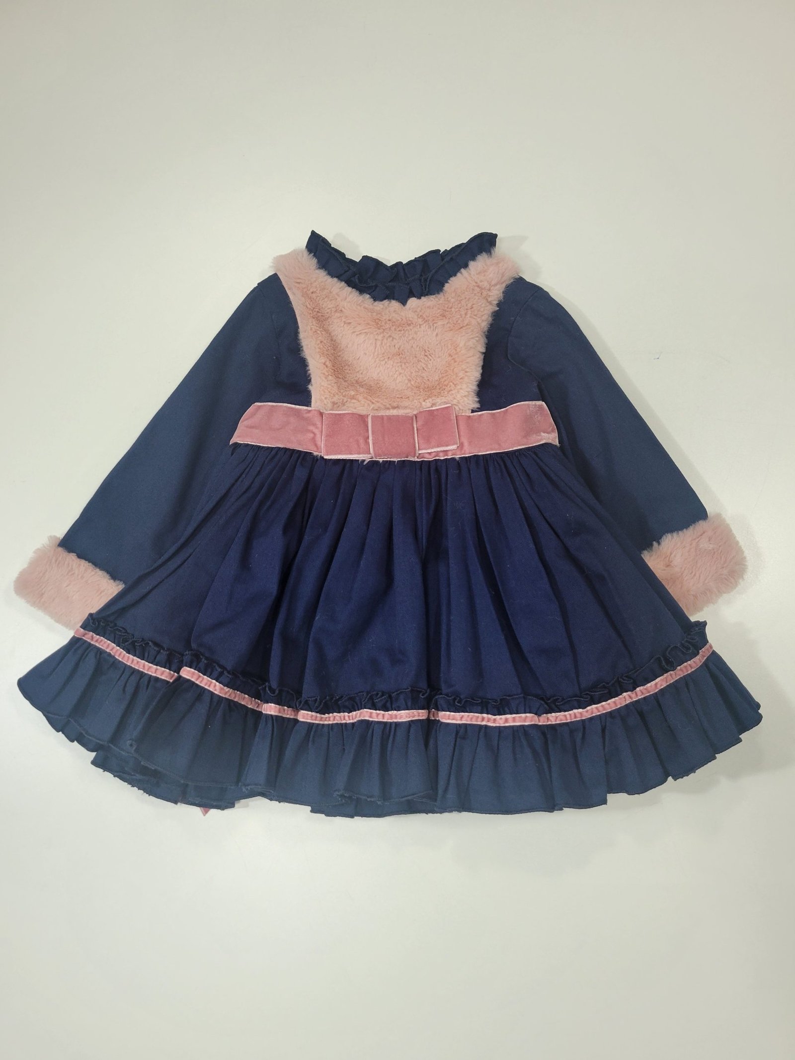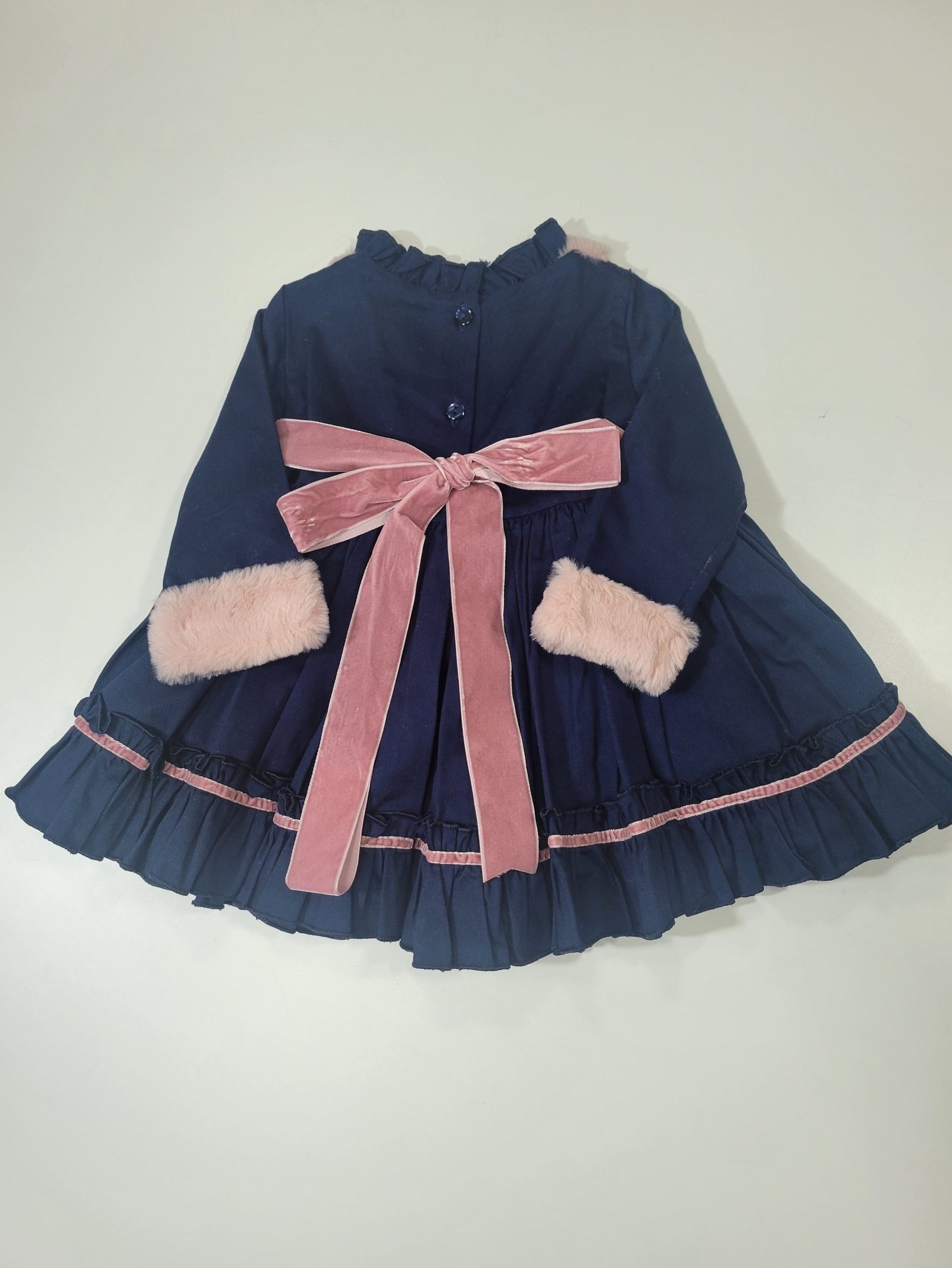 Vestido azul marinho com detalhes em pelo e veludo