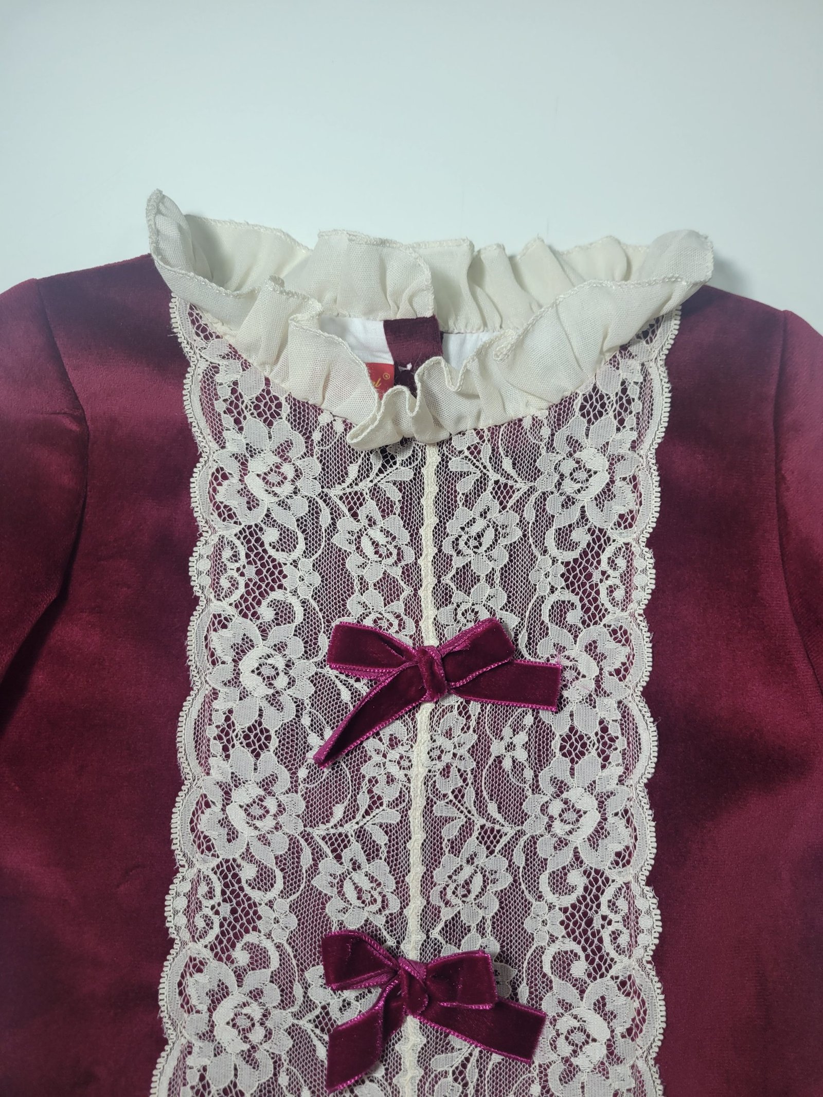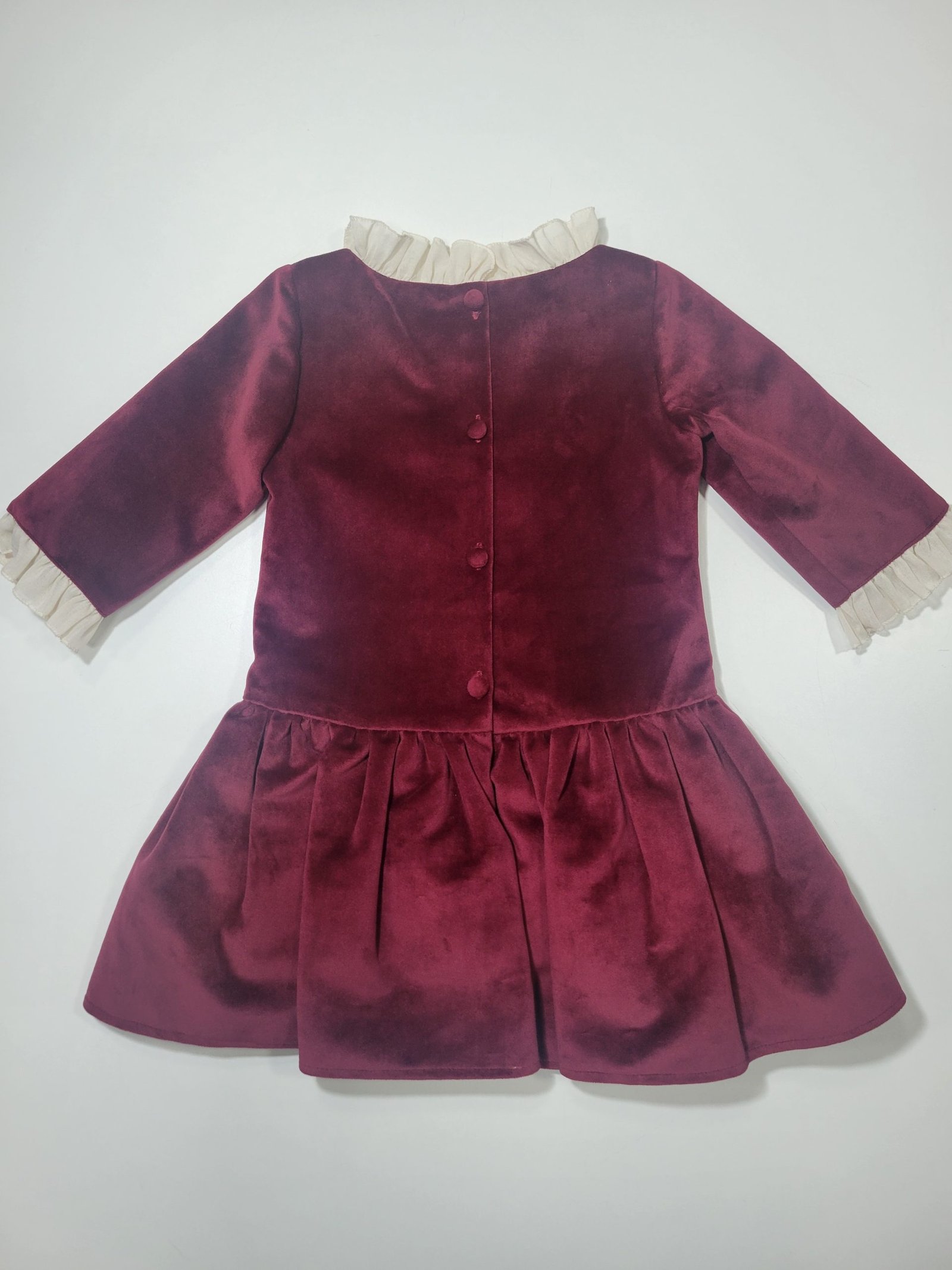 Vestido Bordô com Detalhes em Branco Sujo