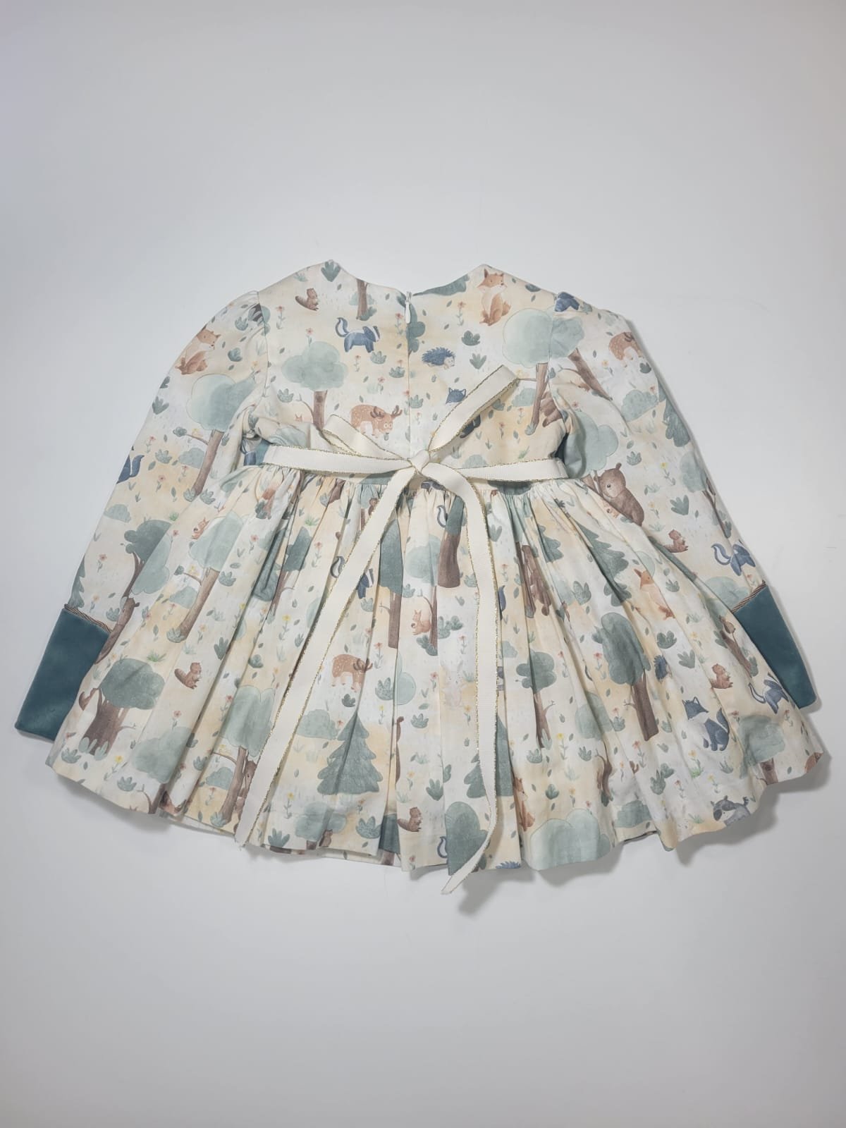 Design: Design criativo com ilustração de bosque e respetivos animais, fita central verde, laço traseiro