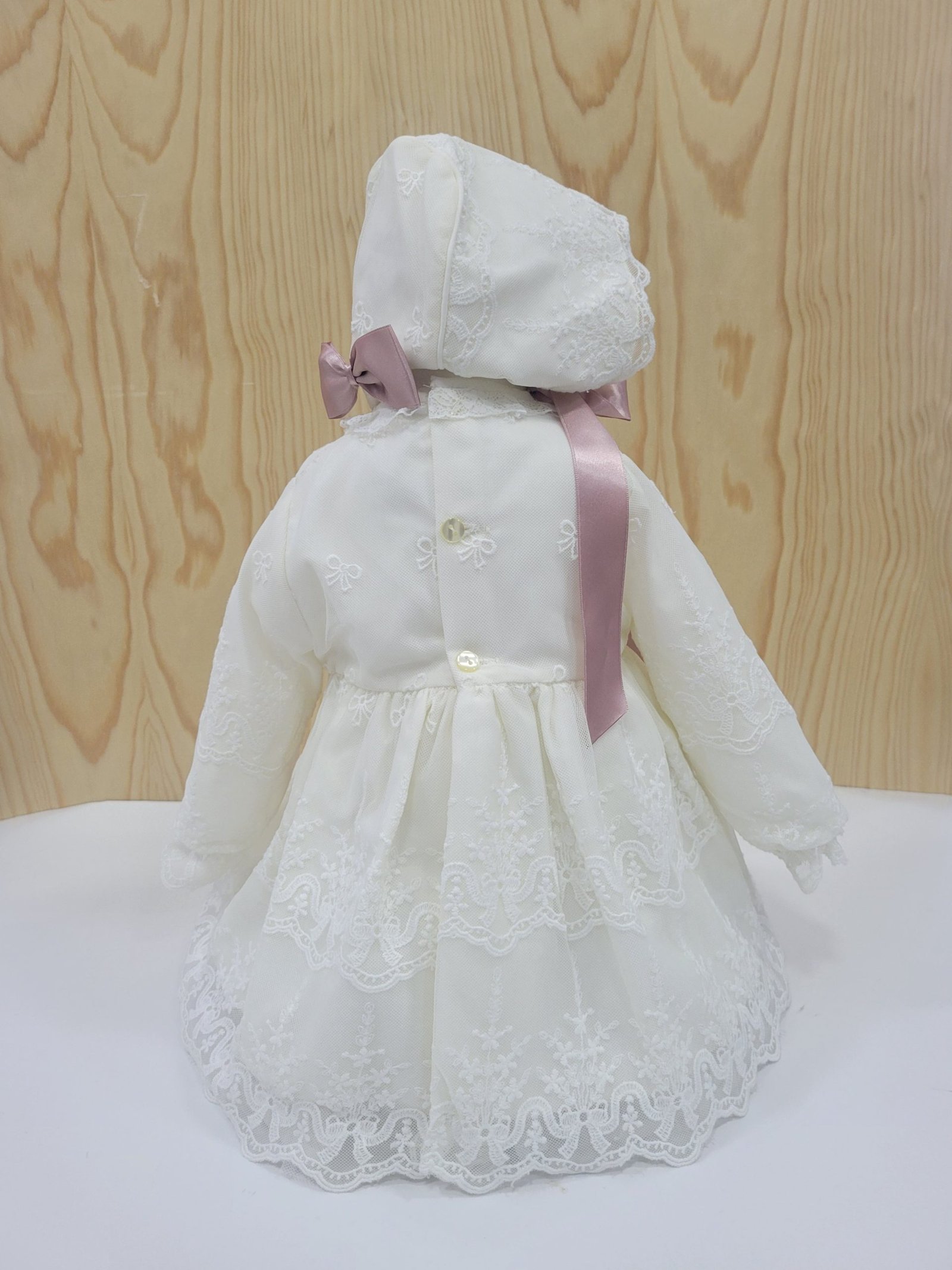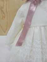 Ajuste: Mangas compridas, gola regular rendada, e botões na parte traseira para facilitar o vestir