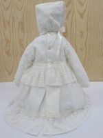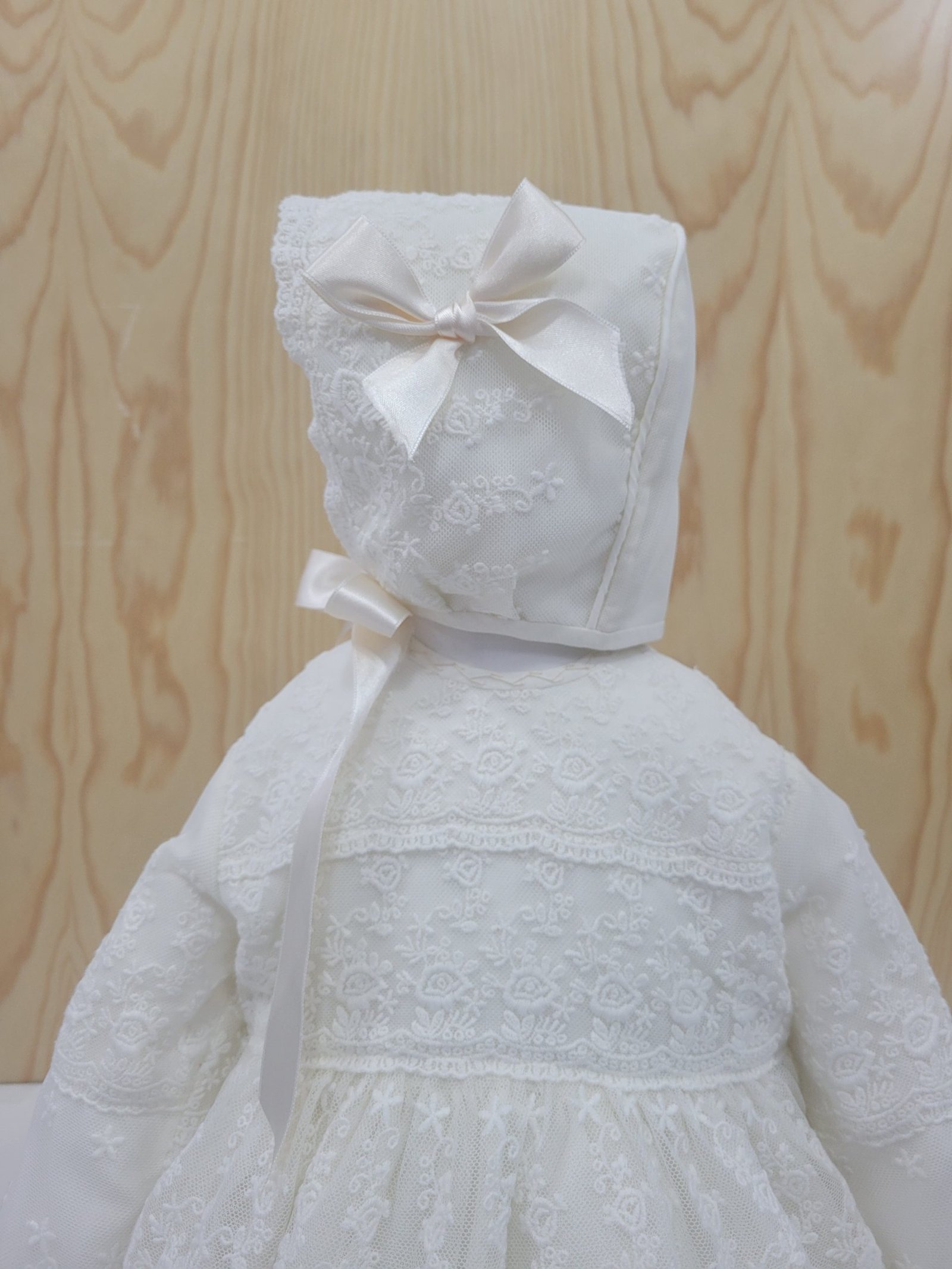 Design: Detalhes com padrões rendados no corpo, mangas, capota e laços decorativos